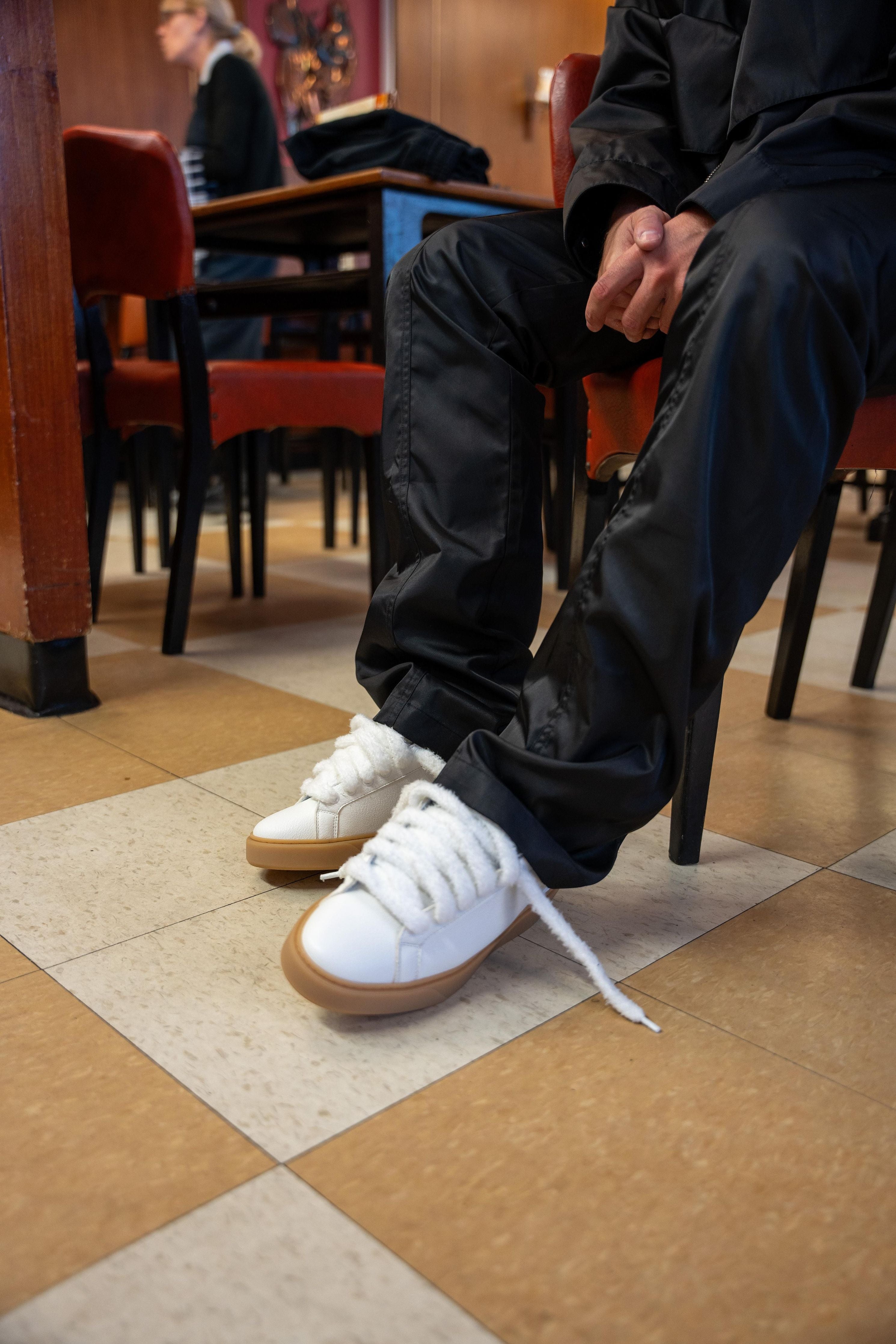 The Sigńet sneaker features a fully white Spanish soft pebbled leather upper which is accompanied by 20mm fluffy white laces. The interior of the sneaker features black collar lining providing unrivalled comfort. The upper rests perfectly on top of our brand new complex gum rubber sole, exclusively made for Sigńet. Our distinct silver logo is positioned across the tongue.