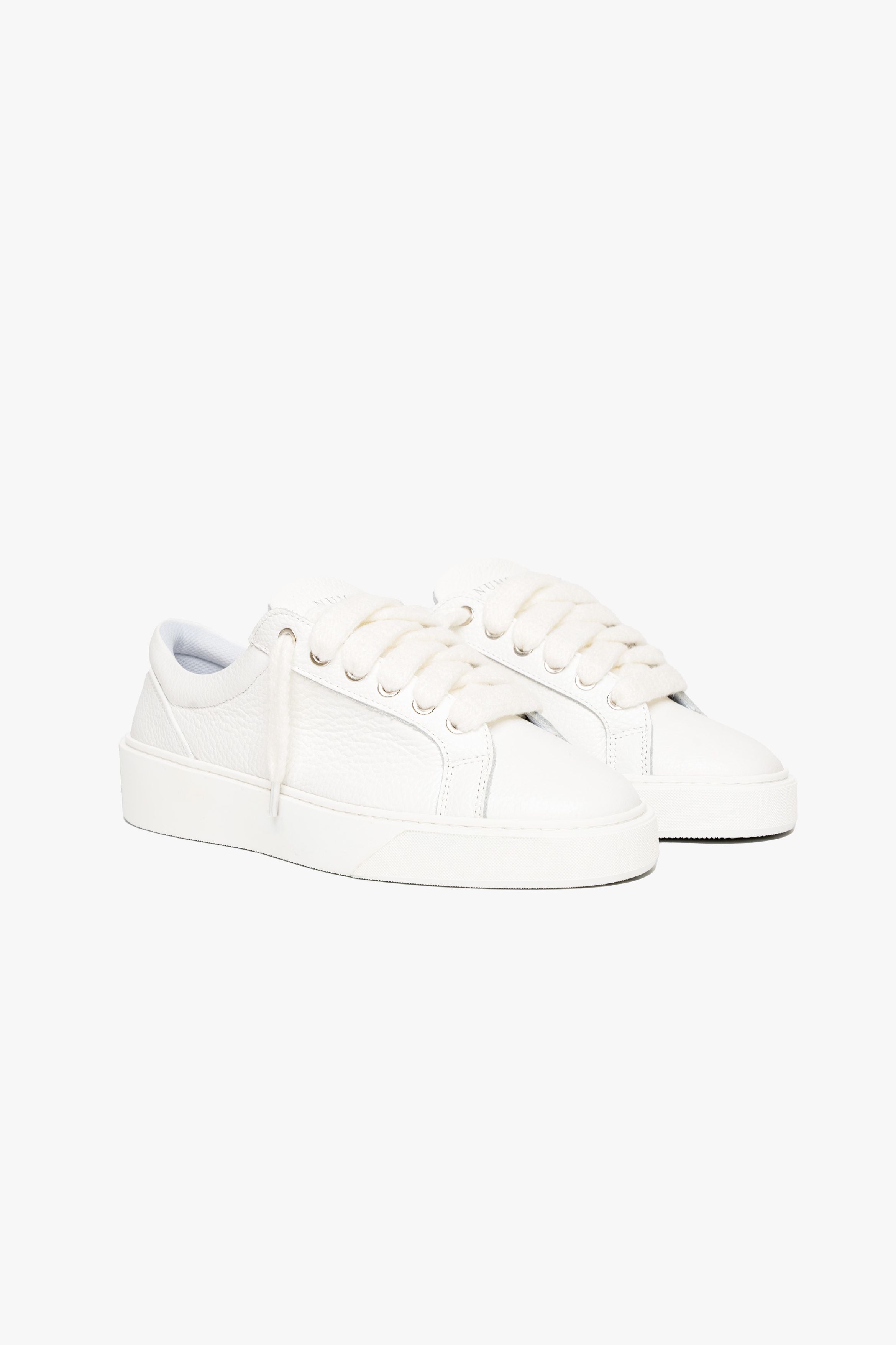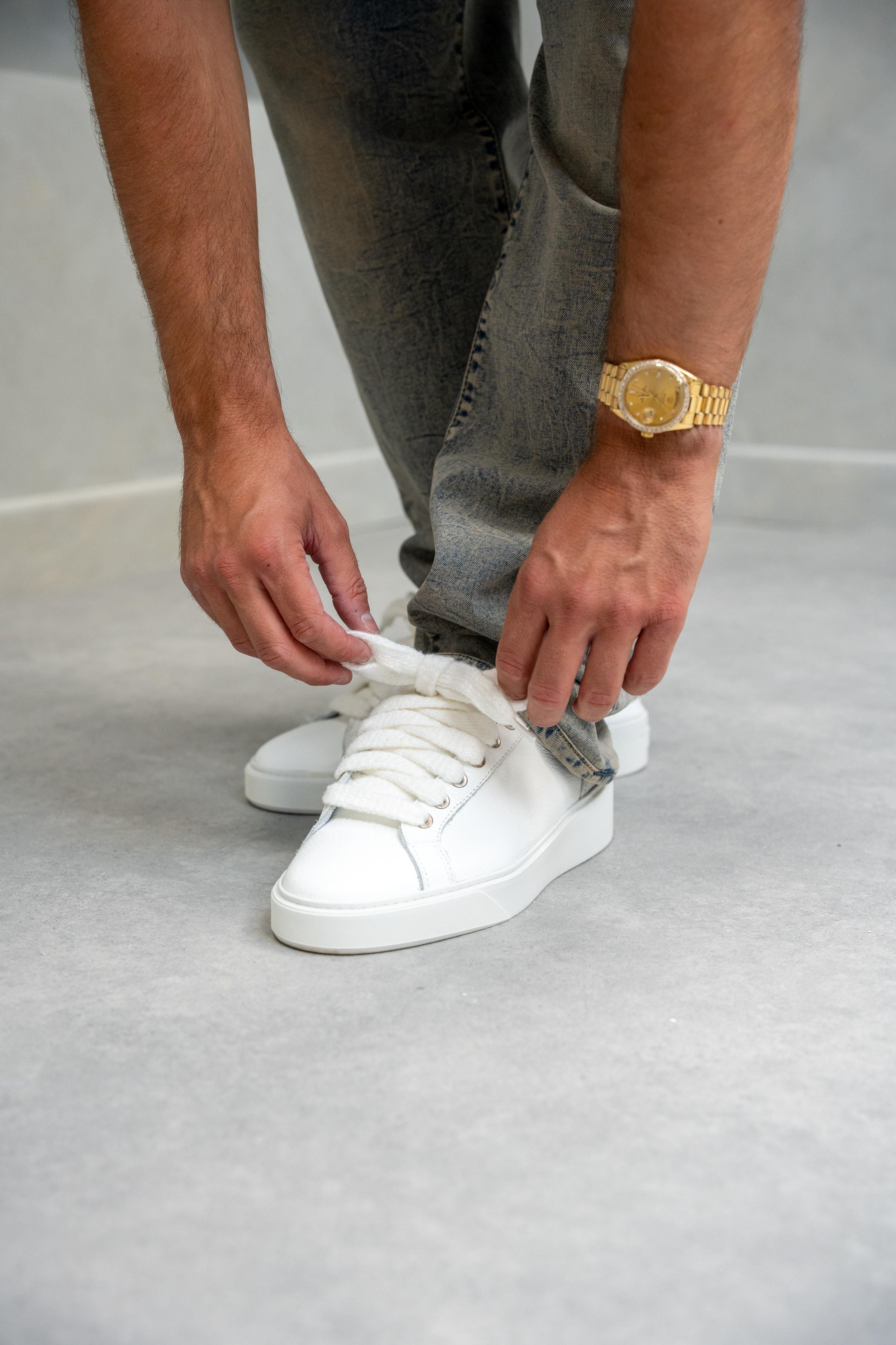 The Sigńet sneaker features a fully white Spanish soft pebbled leather upper which is accompanied by 10mm mohair white laces. The interior of the sneaker features white collar lining providing unrivalled comfort. The upper rests perfectly on top of our brand new complex gum rubber sole, exclusively made for Sigńet. Our distinct silver logo is positioned across the tongue.