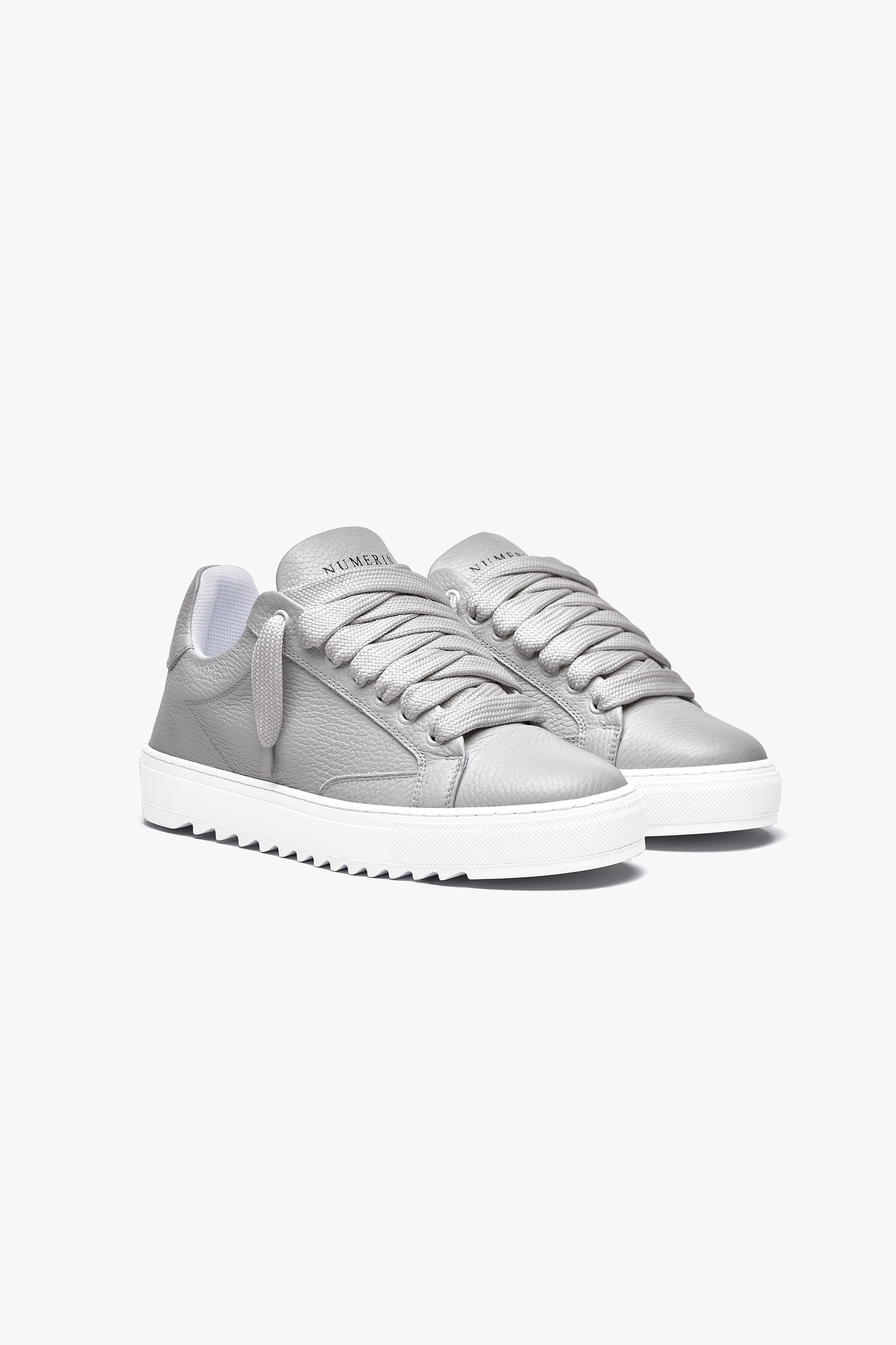 The Atelier trainer was inspired by the Parisian lifestyle. Every stitch and detail was meticulously designed in a Parisian workshop. Acrylic Grey features a premium Italian pebbled leather in a soft grey tone with crisp grey stitching and finished with our signature pebbled leather grey toe cap. The interior of the trainer features collar lining providing unrivalled comfort. The final touches see our Numeriś branding on the heel and tongue of the shoe.