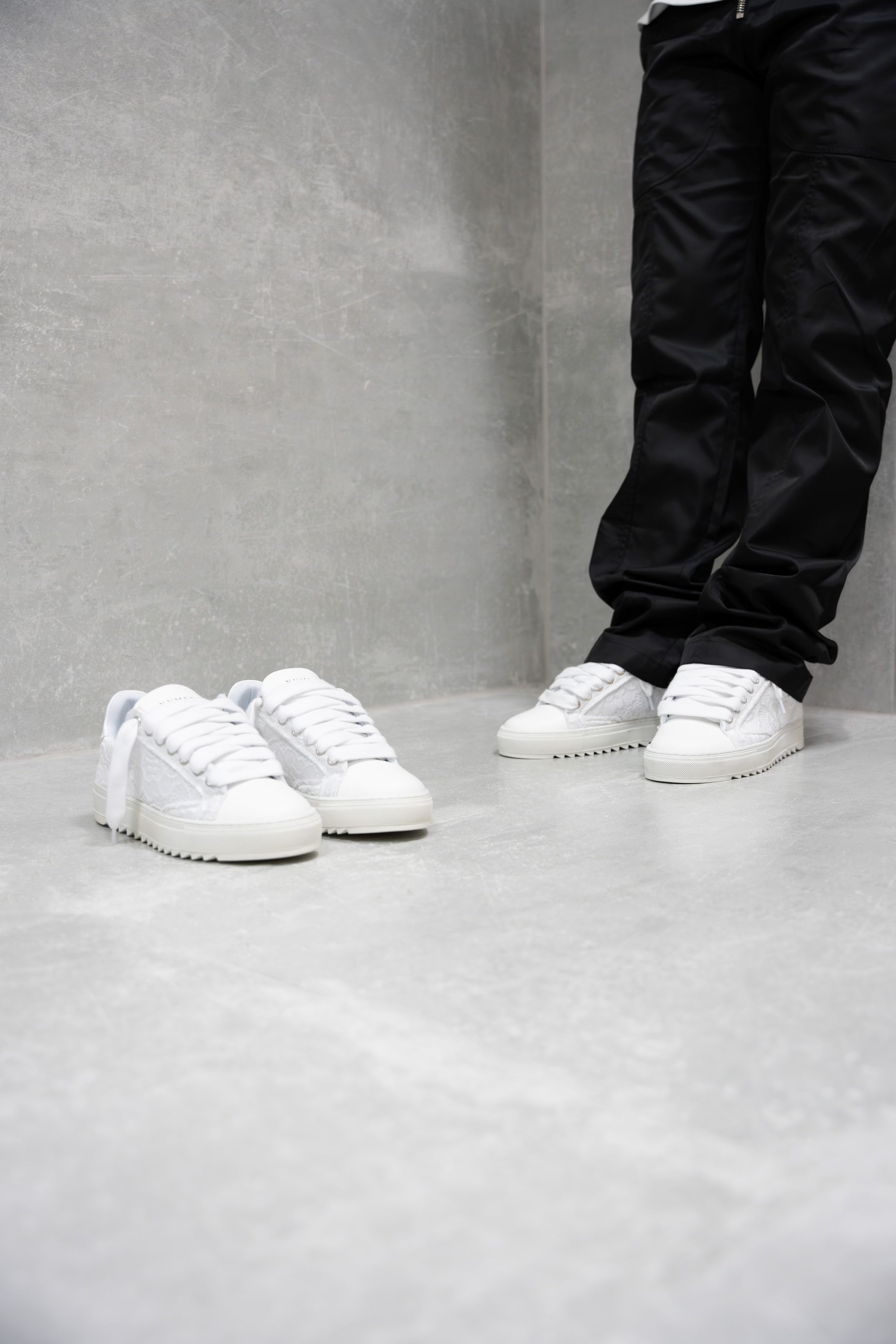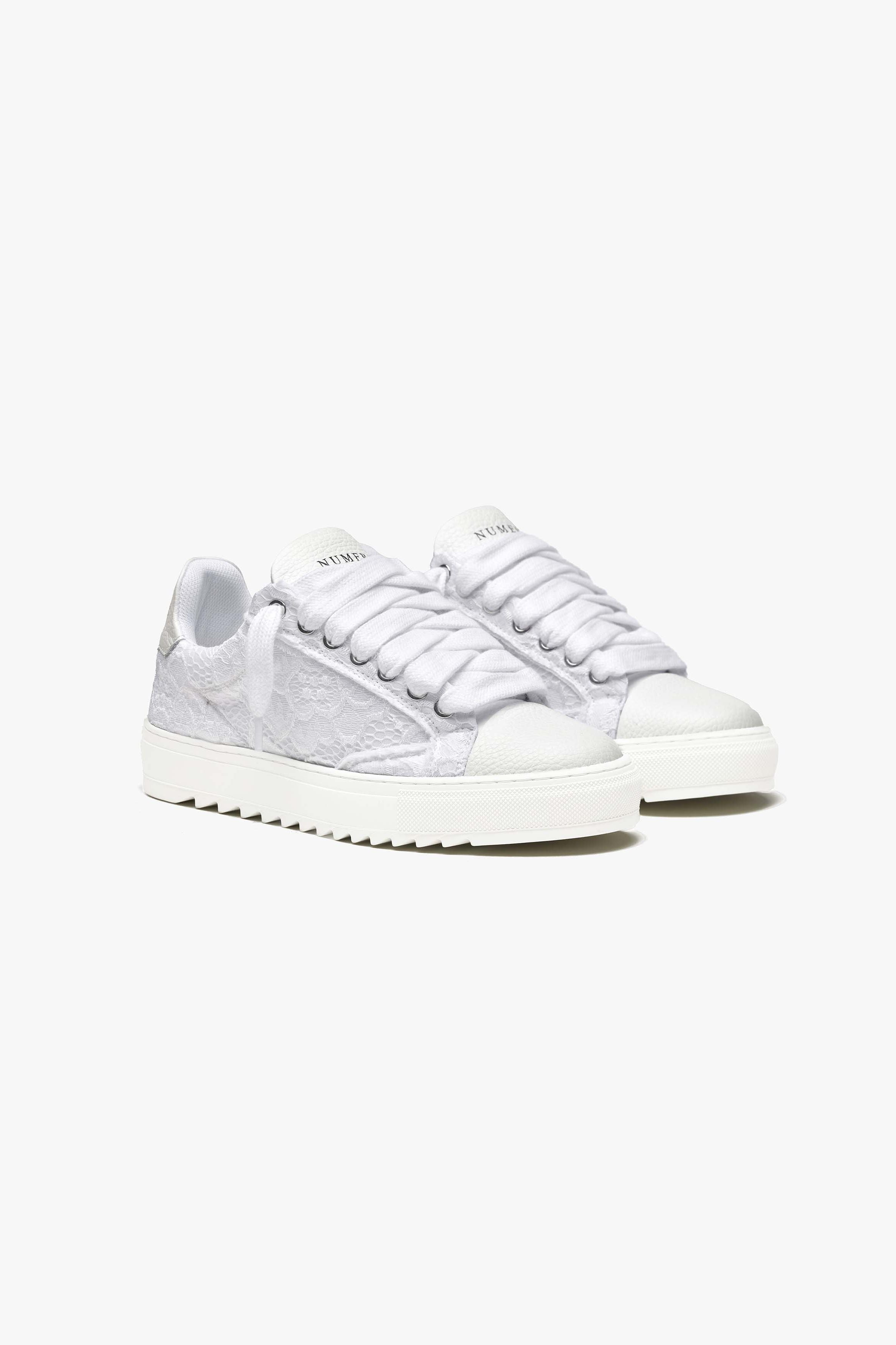 The Atelier trainer was inspired by Parisian lifestyle. Every stitch and detail was meticulously designed in a Parisian workshop. White Veil features a full premium Italian tulle upper with crisp white stitching and finished with our signature pebbled leather white toe cap. The interior of the trainer features collar lining providing unrivalled comfort. The final touches see our Numeriś branding on the heel and the tongue of the shoe.