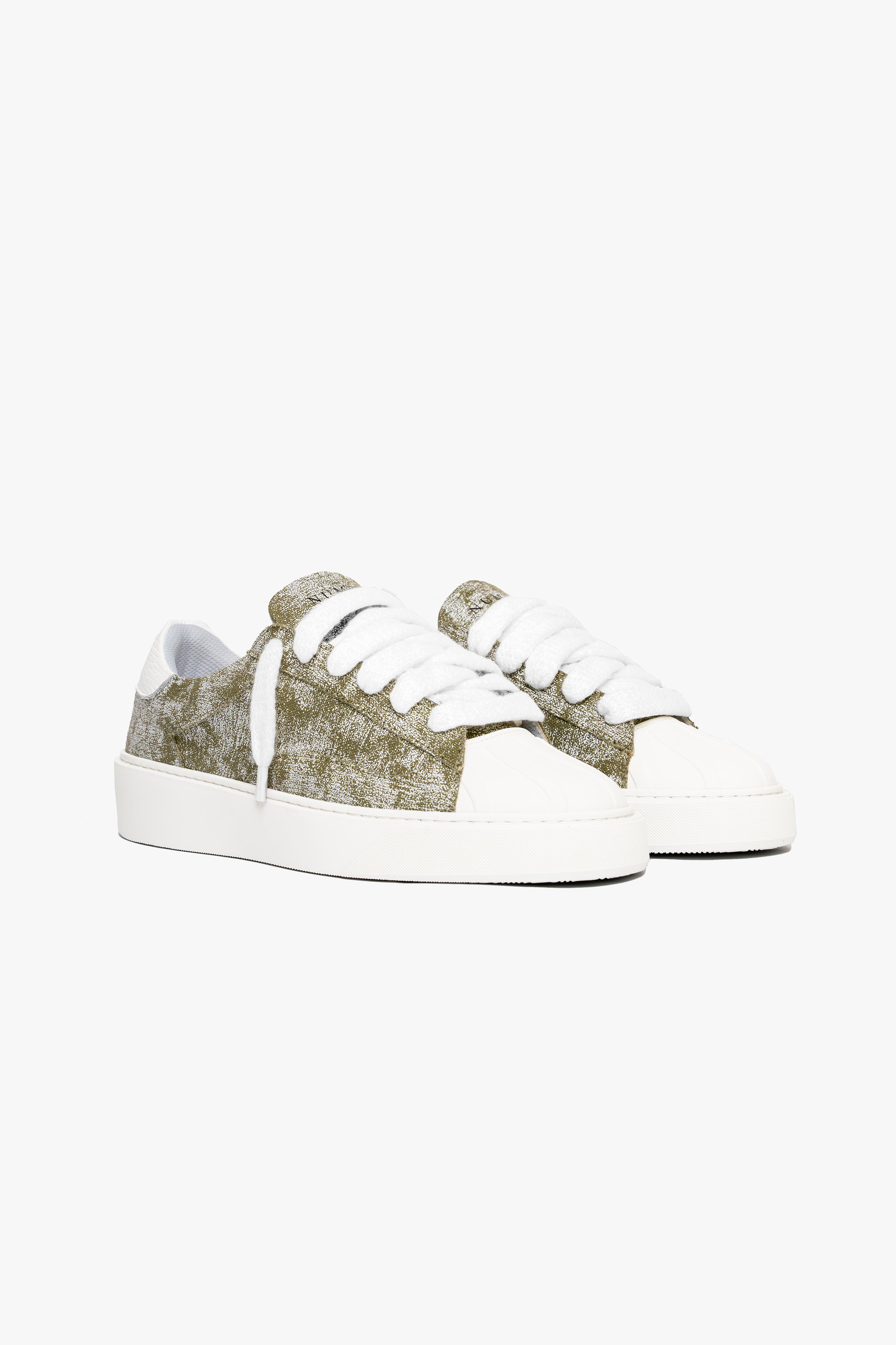 The Khaki colourway features an all over Khaki textured upper that is contrasted by an Italian leather heel tab. Featuring 10mm wide mohair laces, each pair is soft to the touch and slightly textured. Numeris branding is positioned along the tongue, creating a clean aesthetic. All of this rests upon our custom-engineered sole, developed exclusively for the Eclipse - to support the rubber shell toe.