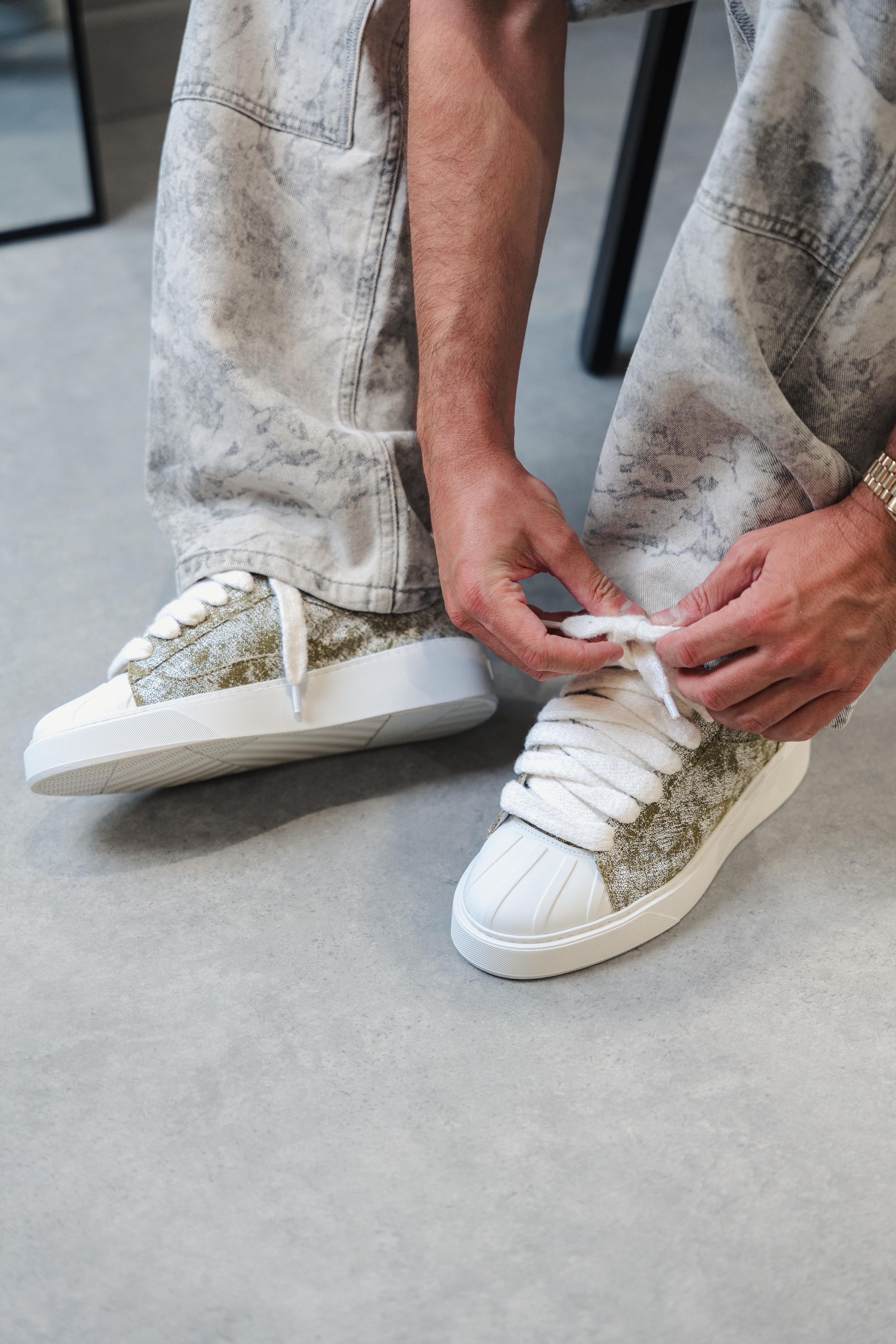 The Khaki colourway features an all over Khaki textured upper that is contrasted by an Italian leather heel tab. Featuring 10mm wide mohair laces, each pair is soft to the touch and slightly textured. Numeris branding is positioned along the tongue, creating a clean aesthetic. All of this rests upon our custom-engineered sole, developed exclusively for the Eclipse - to support the rubber shell toe.