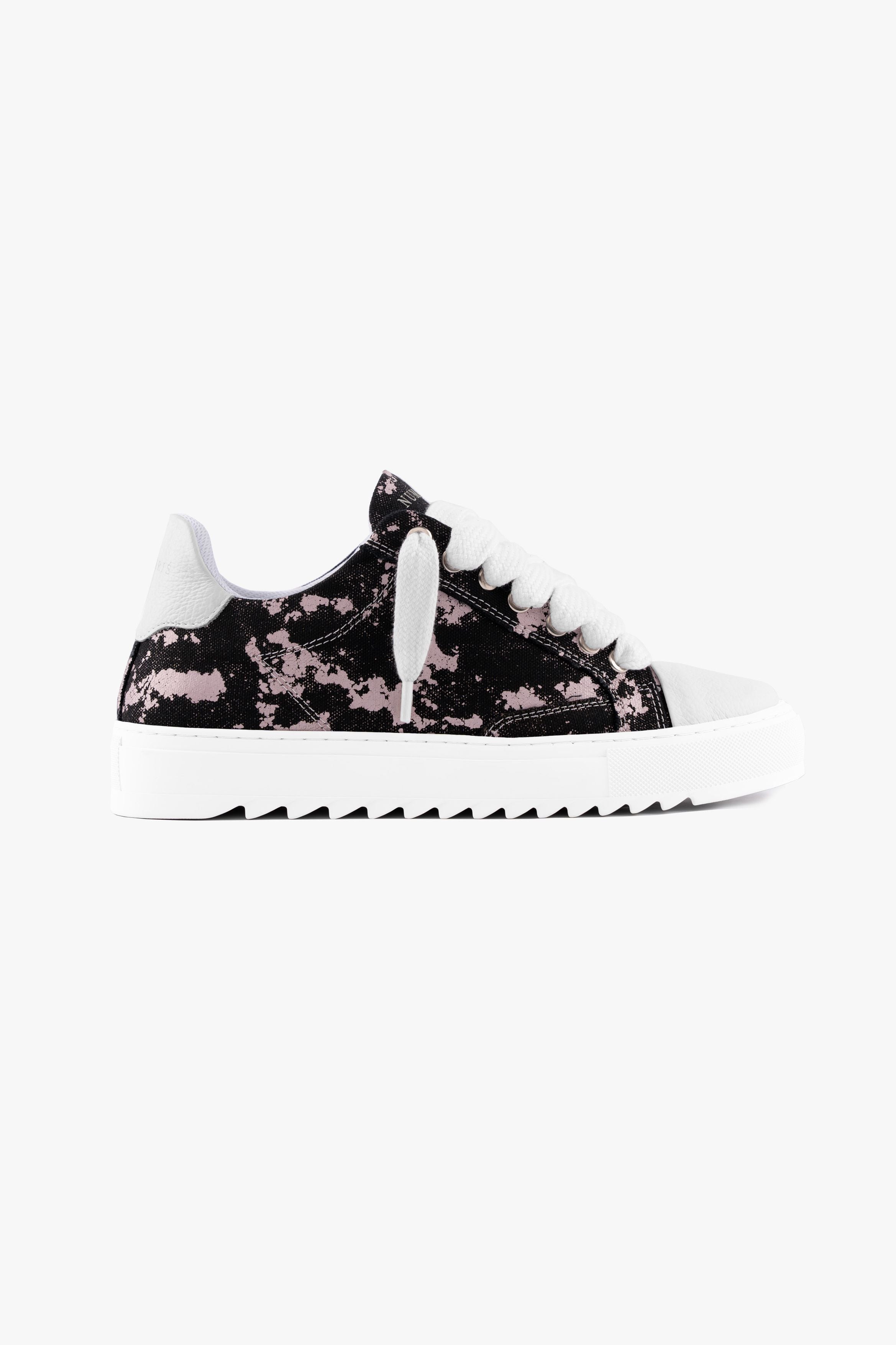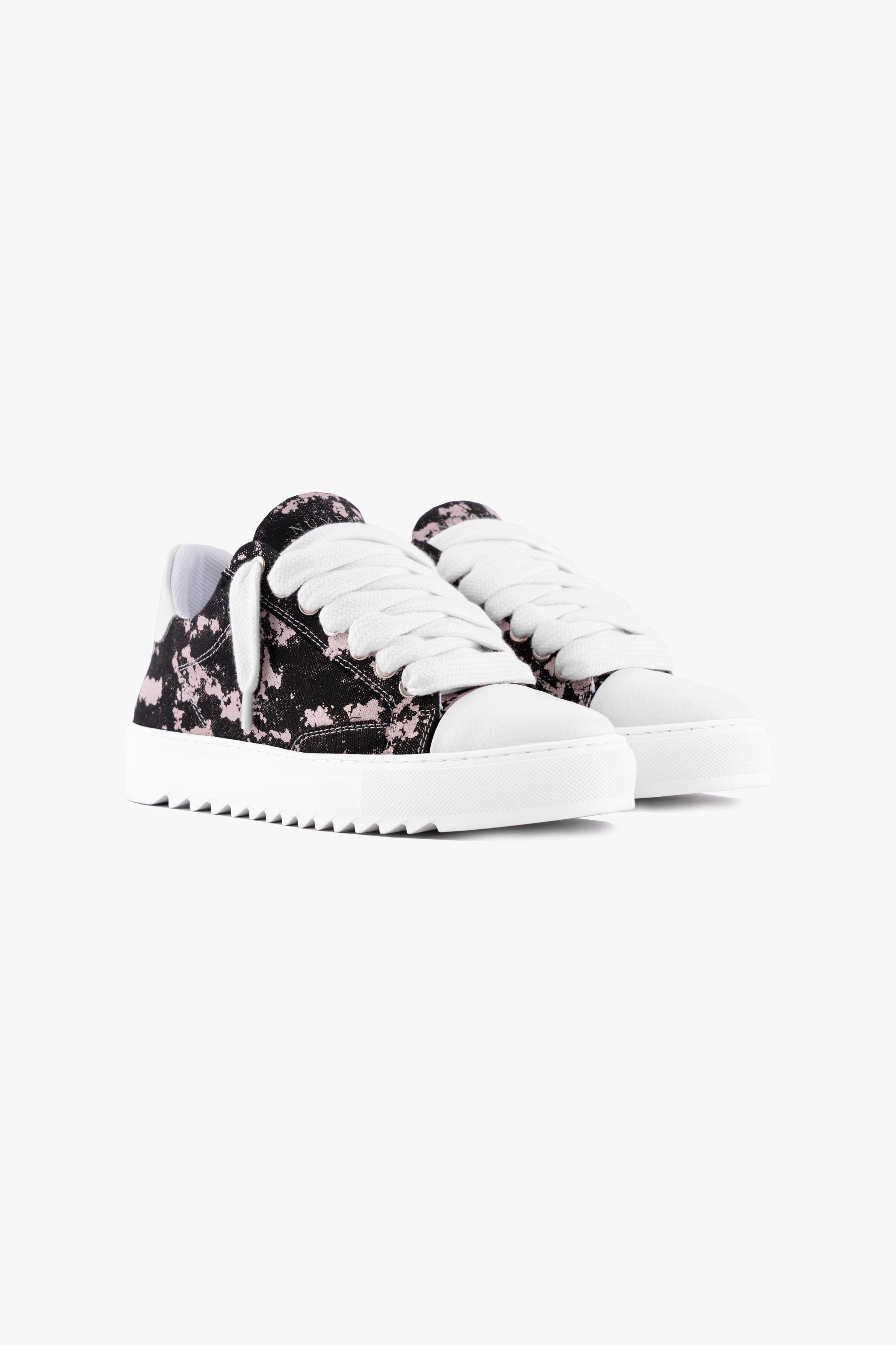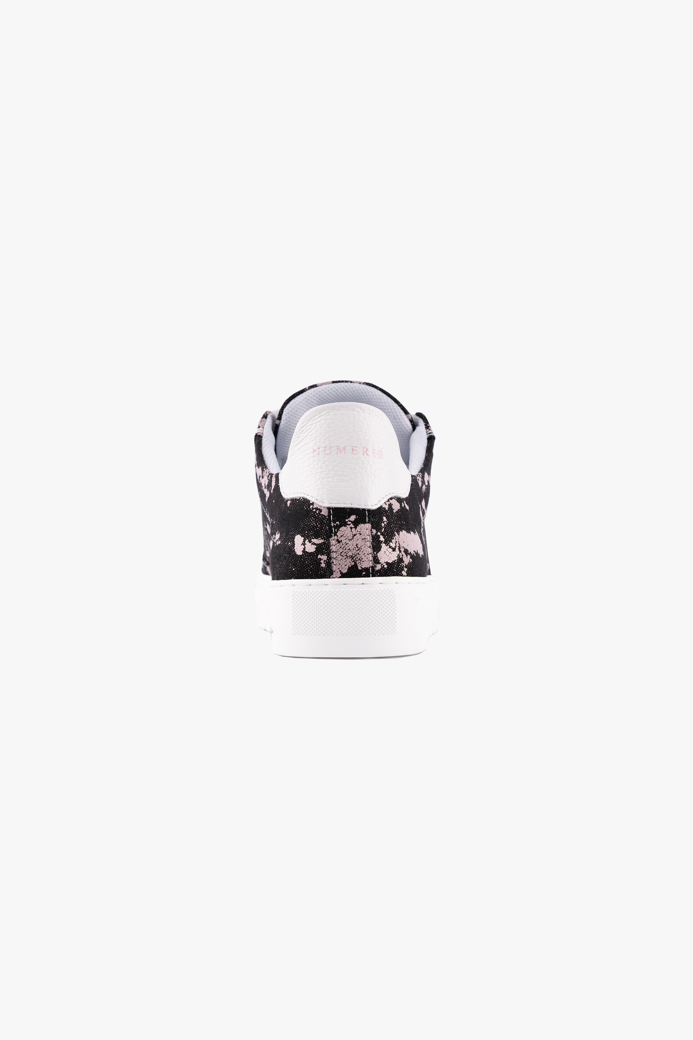 Crafted with meticulous attention to detail, the bespoke hand-dyed canvas upper ensures that each pair is a unique work of art, as no two pairs will bear the same pattern. Complementing this distinctive feature is the signature crisp white pebbled leather toe cap, adding a touch of sophistication to the design. Inside, the trainer boasts a comfortable collar lining that enhances the overall wear experience. The finishing touches include our distinctive Numeriś branding on the heel.