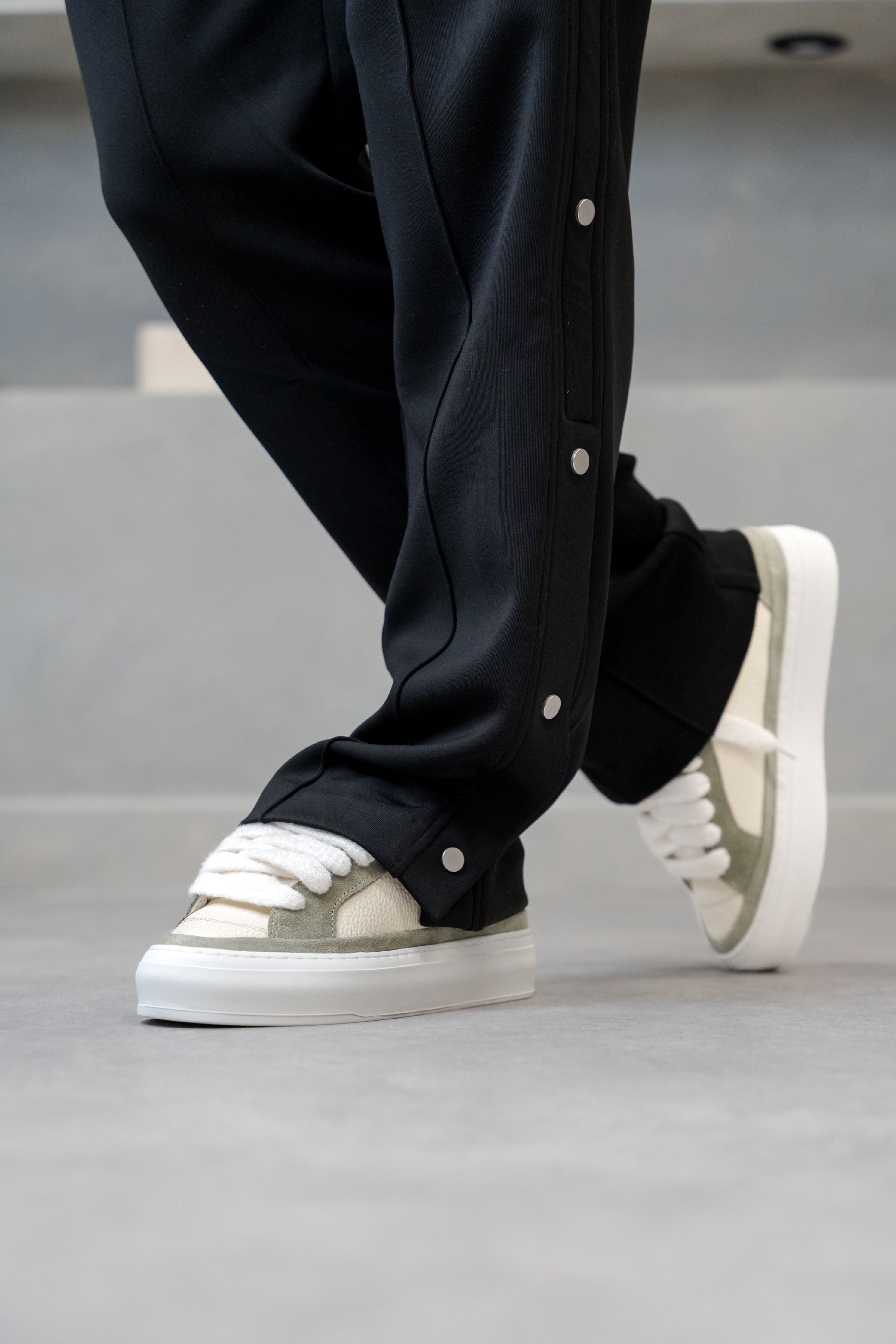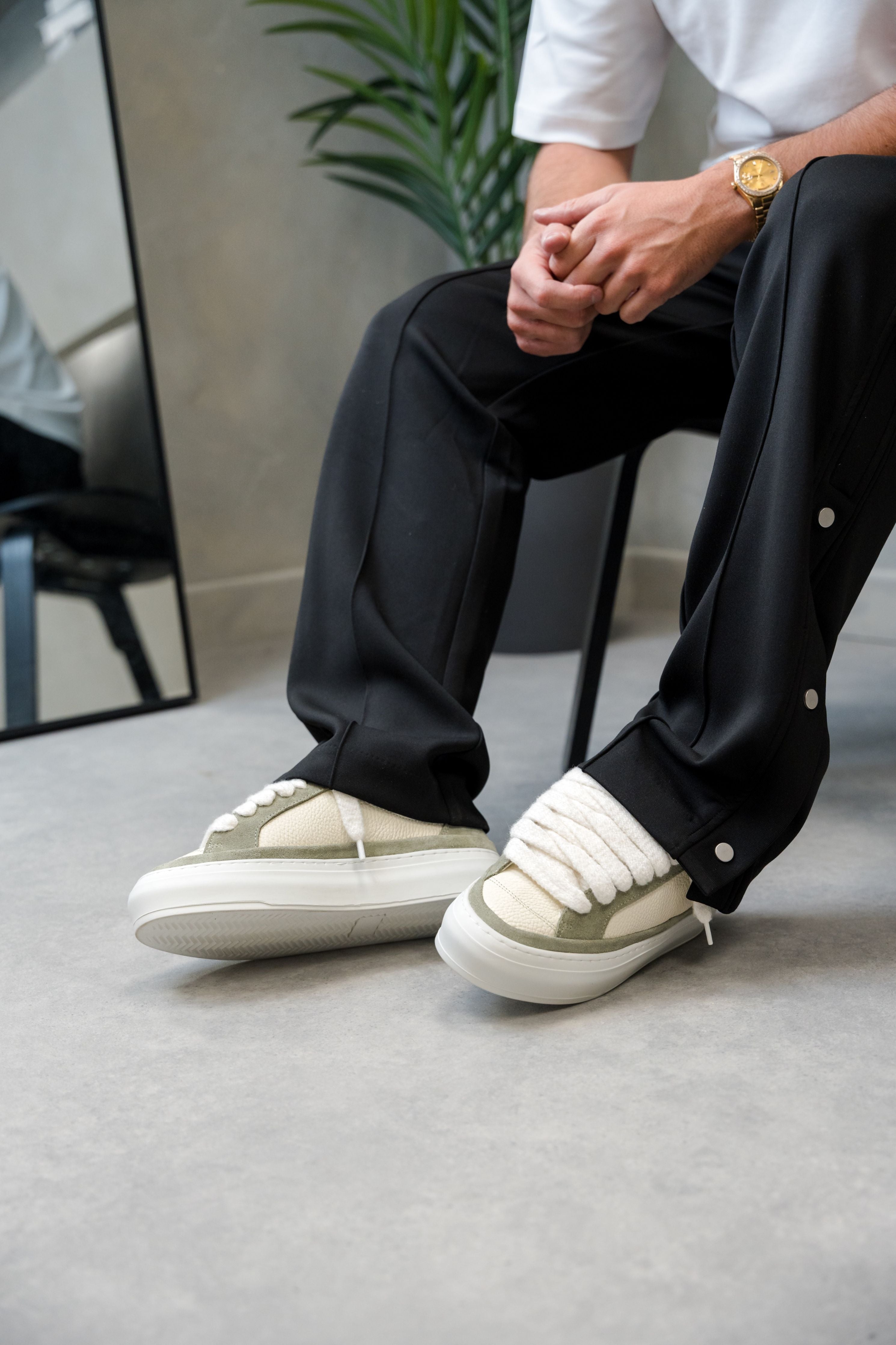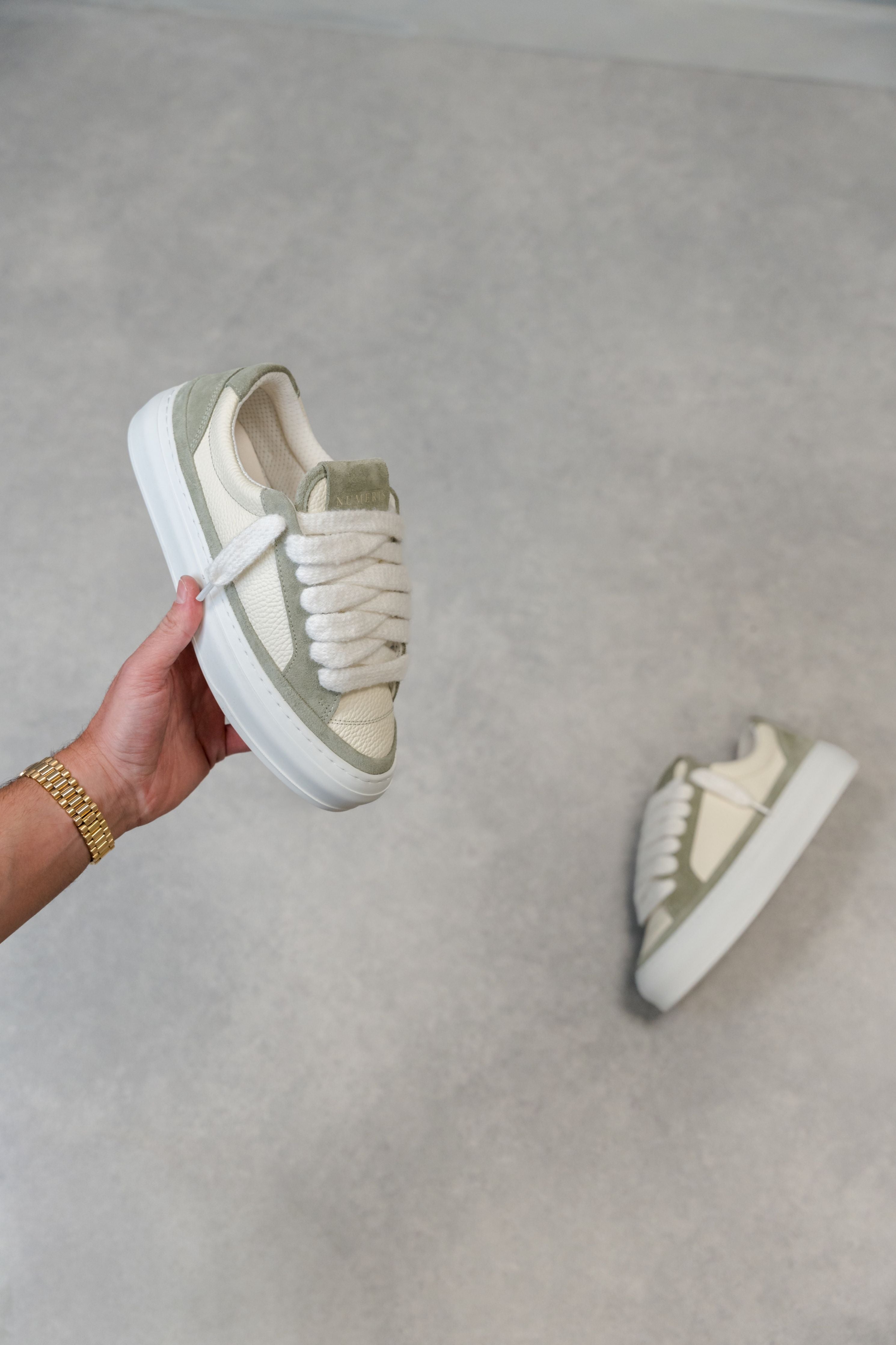 La combinación de colores Cactus presenta gamuzas y cueros italianos premium, cordones ultra suaves de mohair blanco y nuestra etiqueta distintiva en la lengüeta de Numeriś — todo sobre una suela nueva y diseñada a medida exclusivamente para la línea Athena.