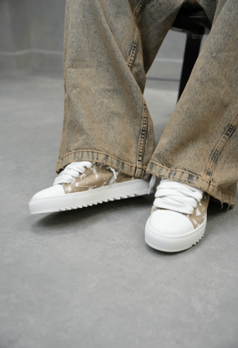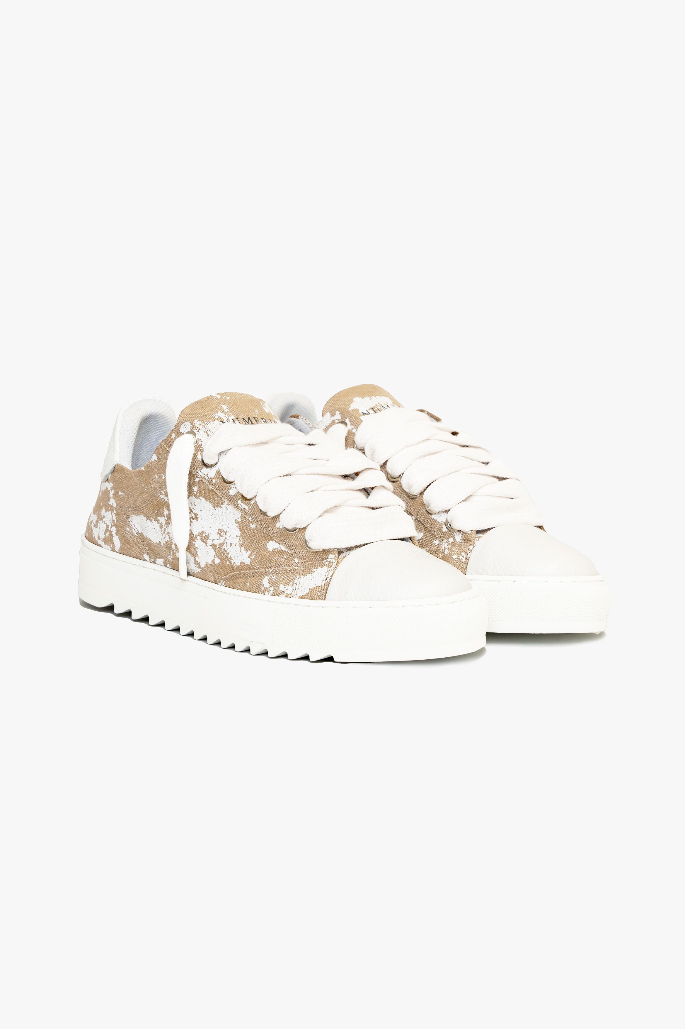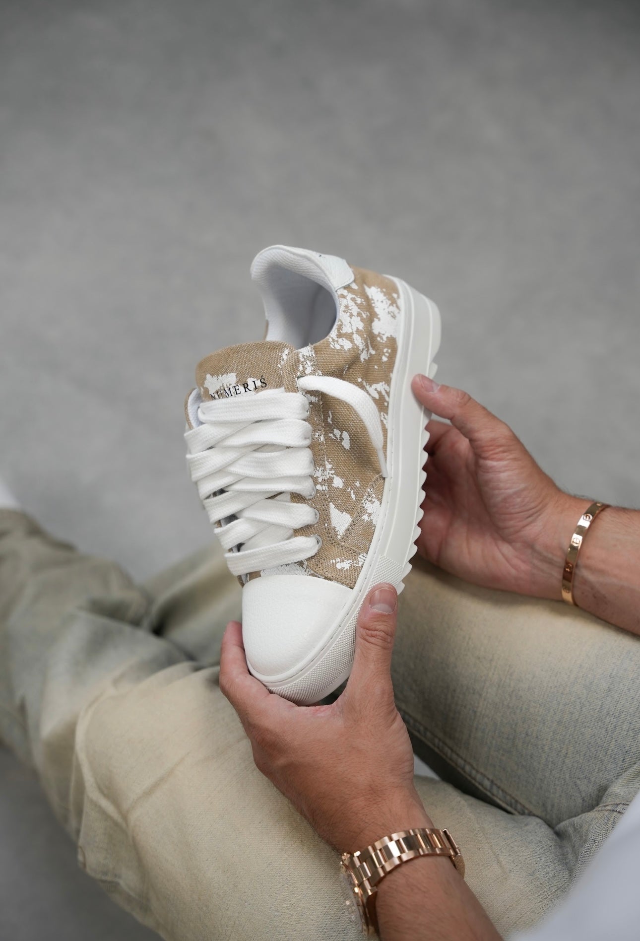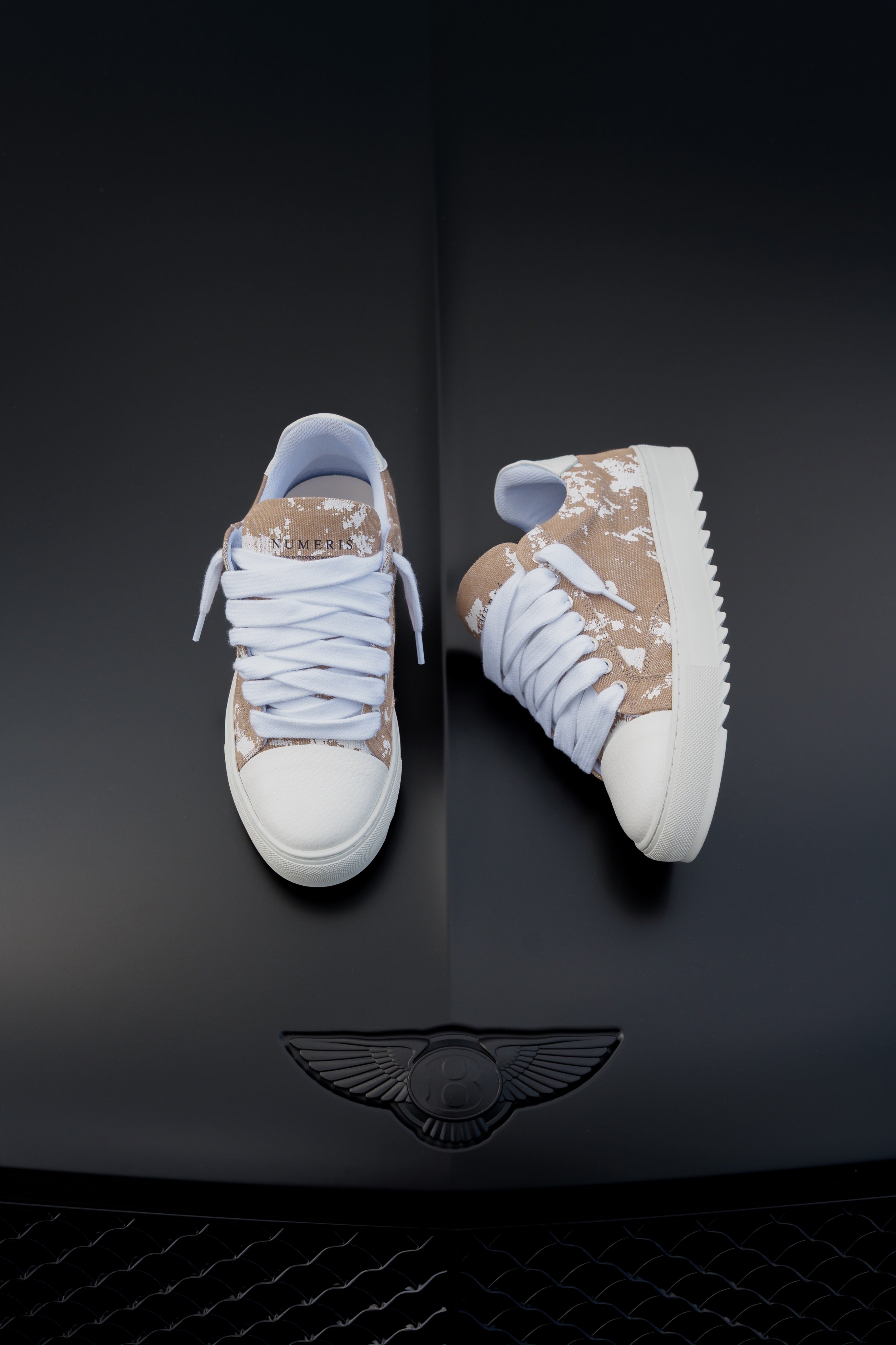 Confectionnée avec une attention méticuleuse aux détails, la tige en toile teinte à la main sur mesure garantit que chaque paire est une œuvre d'art unique, car aucune paire ne portera le même motif. Complétant cette caractéristique distinctive, le bout en cuir grainé blanc éclatant signature ajoute une touche de sophistication au design. À l'intérieur, la chaussure de sport dispose d'une doublure de col confortable qui améliore l'expérience de port globale. Les touches finales incluent notre marquage distinctif Numeriś sur le talon.