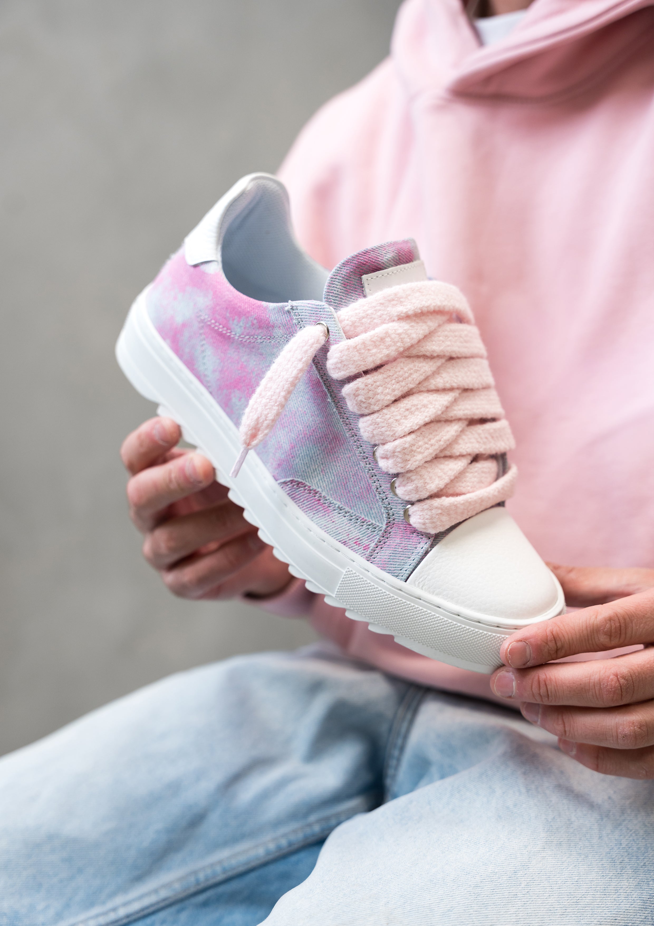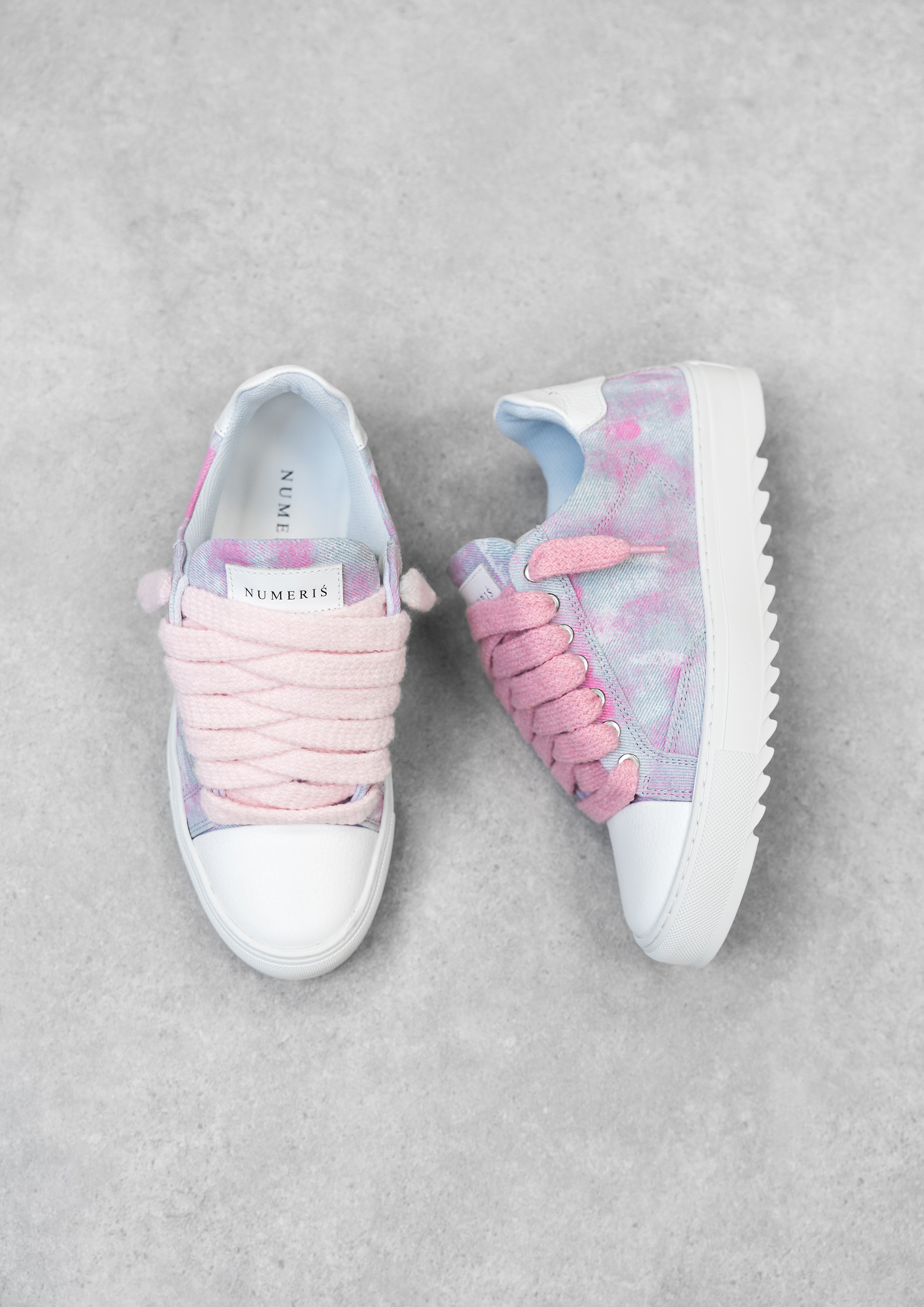 Fabriquée avec une attention méticuleuse aux détails, la tige en toile teinte à la main et réalisée sur mesure garantit que chaque paire est une œuvre d'art unique, car aucune paire ne présente le même motif. Cette caractéristique distinctive est complétée par l'empiècement d'avant-pied signature en cuir grainé blanc éclatant, qui apporte une touche de sophistication au design. À l'intérieur, la sneaker bénéficie d'une doublure de col confortable qui améliore l'expérience de port globale. Les finitions incluent notre branding distinctif Numeriś au talon.