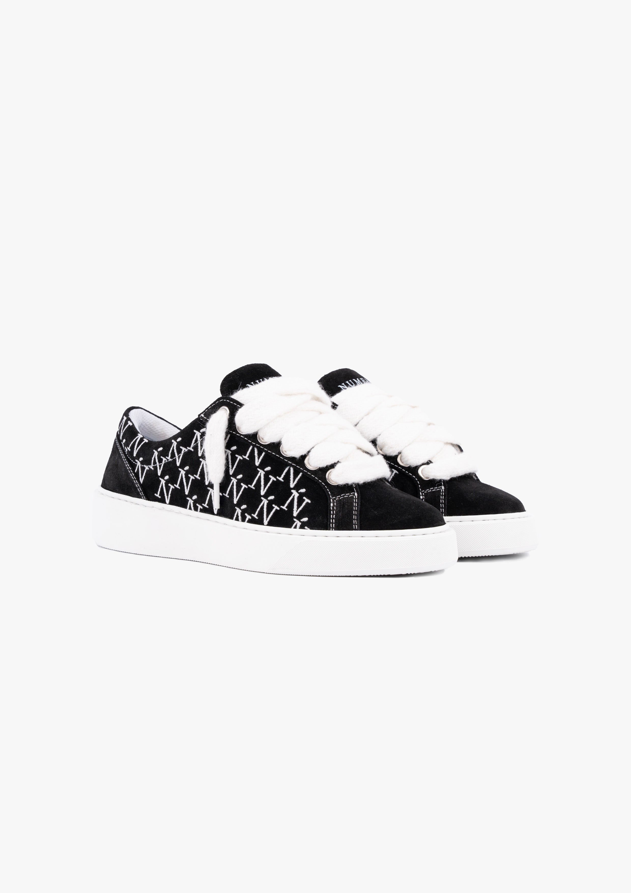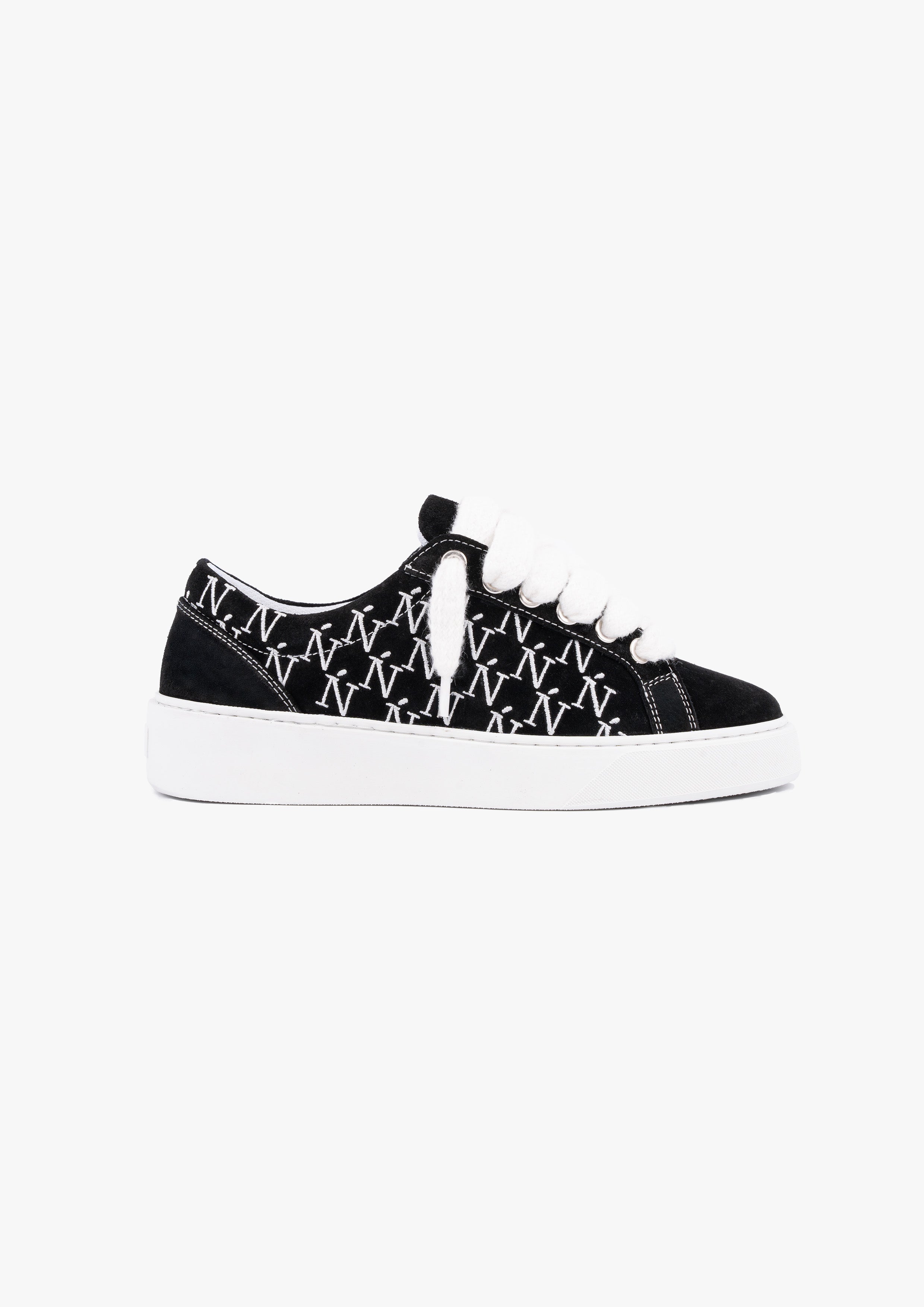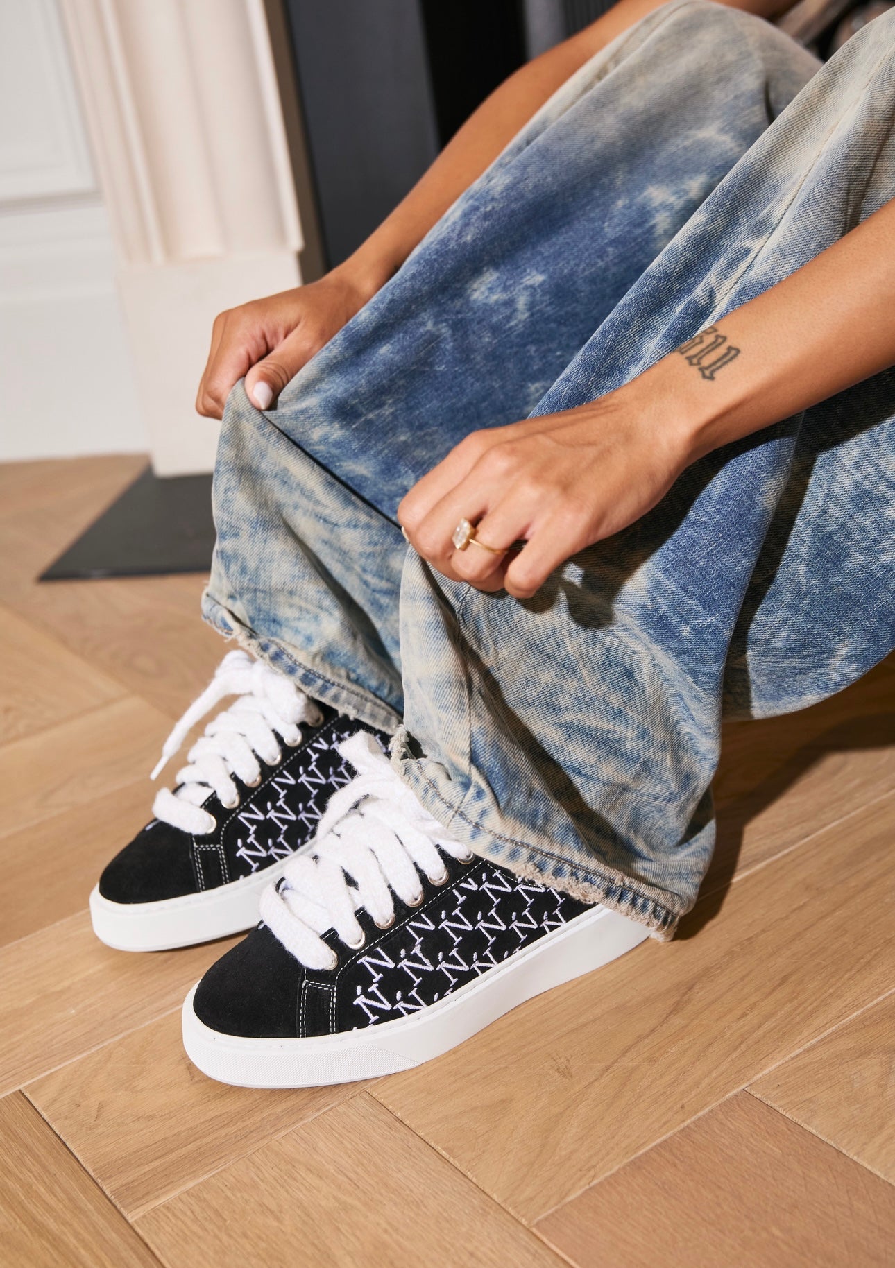 La sneaker Sigńet pour femmes réinvente notre design emblématique avec une mise à jour élégante et polyvalente. Confectionnée en Italie dans un doux daim noir, elle est agrémentée de lacets en mohair blanc de 10 mm et de panneaux latéraux assortis, soulignés par notre monogramme Ń brodé à la main. Une doublure de col blanche et lisse améliore le confort à chaque pas, tandis que la tige repose avec grâce sur notre nouvelle semelle en caoutchouc complexe — créée exclusivement pour la Sigńet. Pour parfaire le look, notre logo argenté distinctif est élégamment placé sur la languette, une marque subtile de style intemporel.