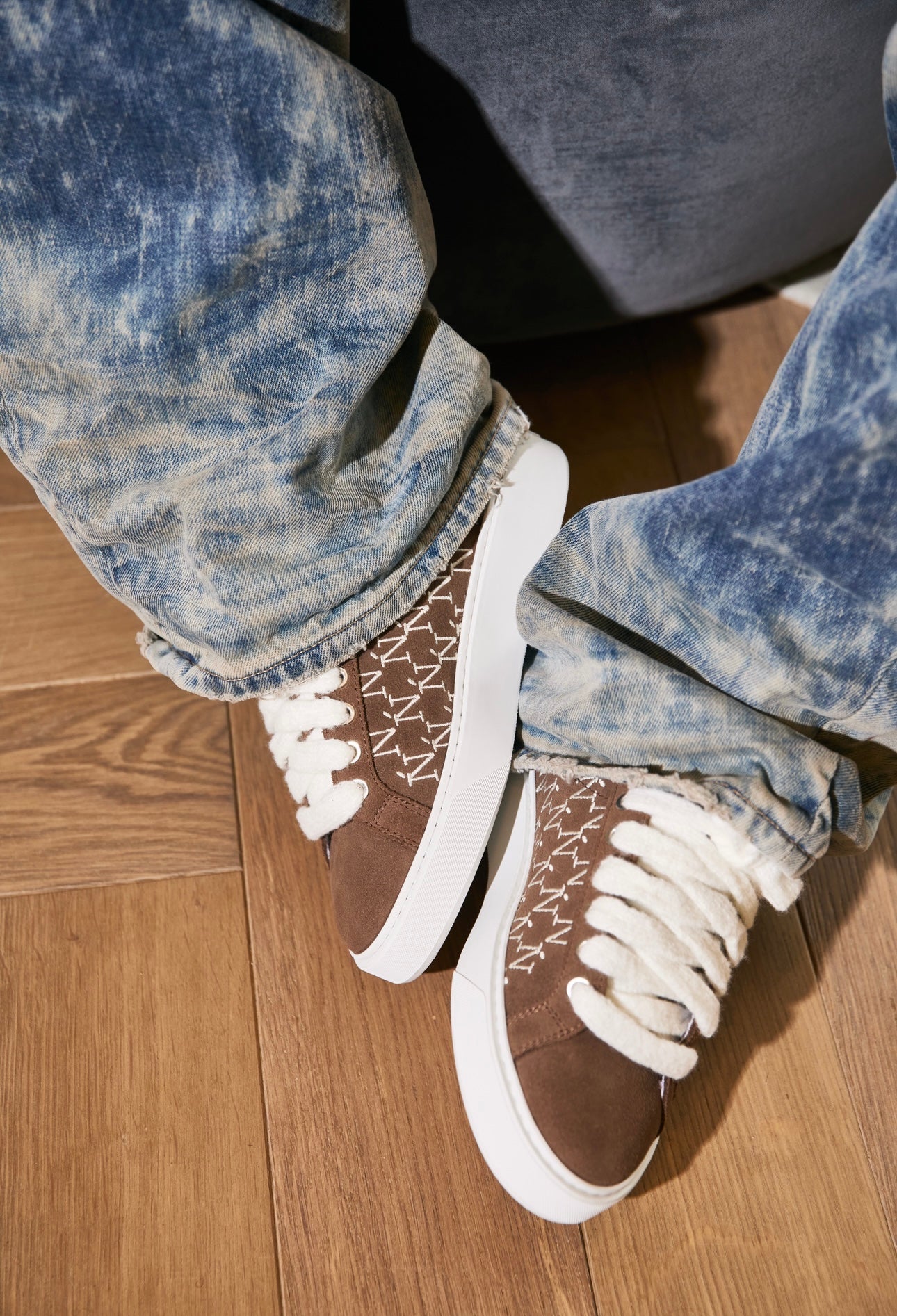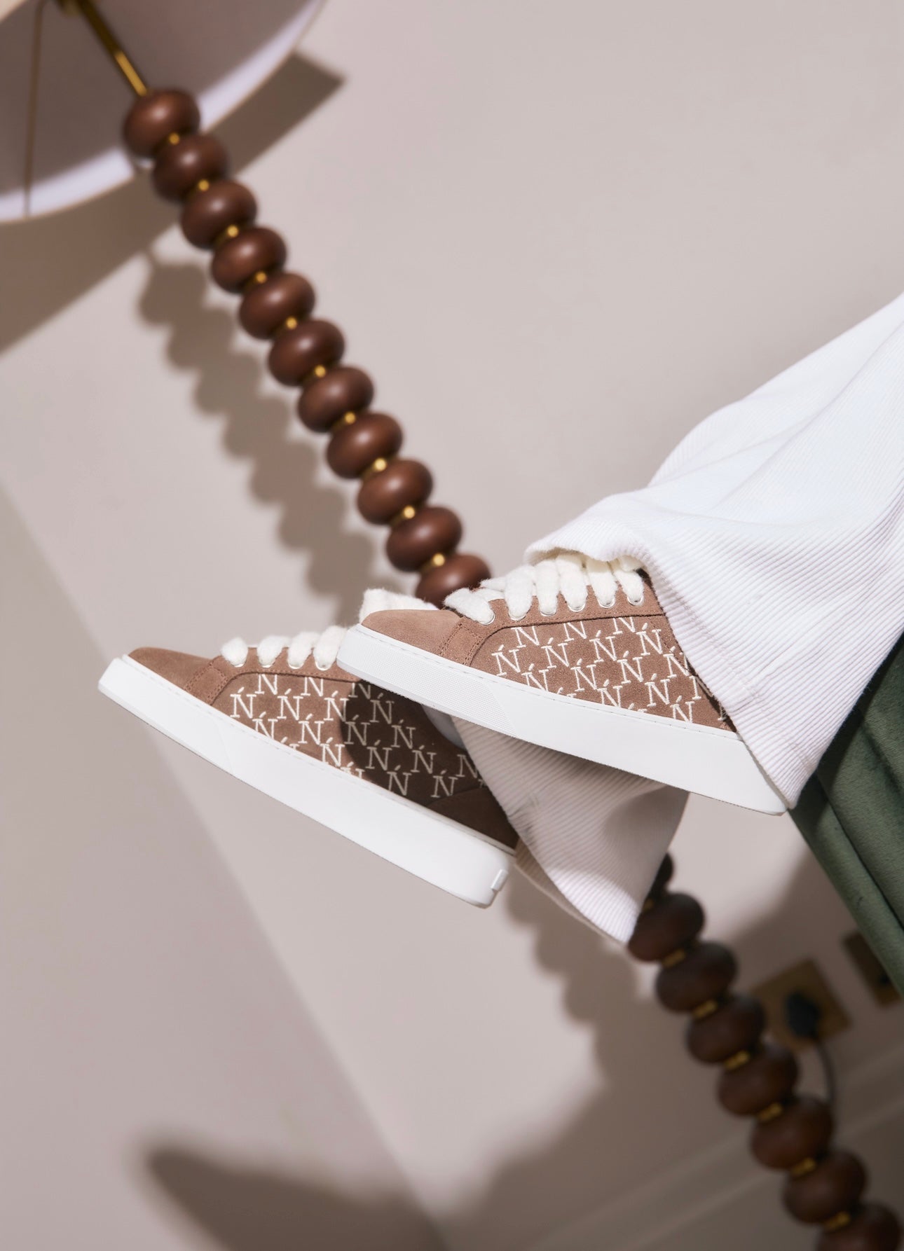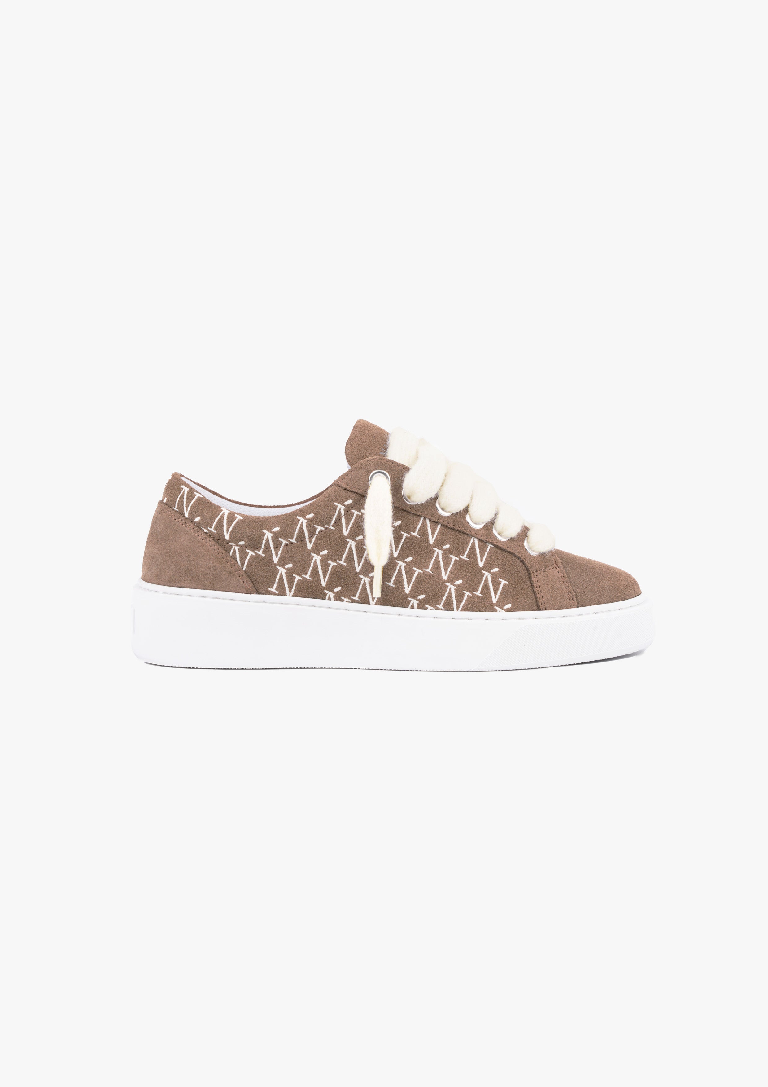 La sneaker Sigńet pour femmes réinvente notre design emblématique avec une mise à jour élégante et polyvalente. Confectionnée en Italie dans un doux daim marron clair, elle est agrémentée de lacets en mohair blanc de 10 mm et de panneaux latéraux assortis, soulignés par notre monogramme Ń brodé à la main. Une doublure de col blanche et lisse améliore le confort à chaque pas, tandis que la tige repose avec grâce sur notre nouvelle semelle en caoutchouc complexe — créée exclusivement pour la Sigńet. Pour parfaire le look, notre logo argenté distinctif est élégamment placé sur la languette, une marque subtile de style intemporel.
