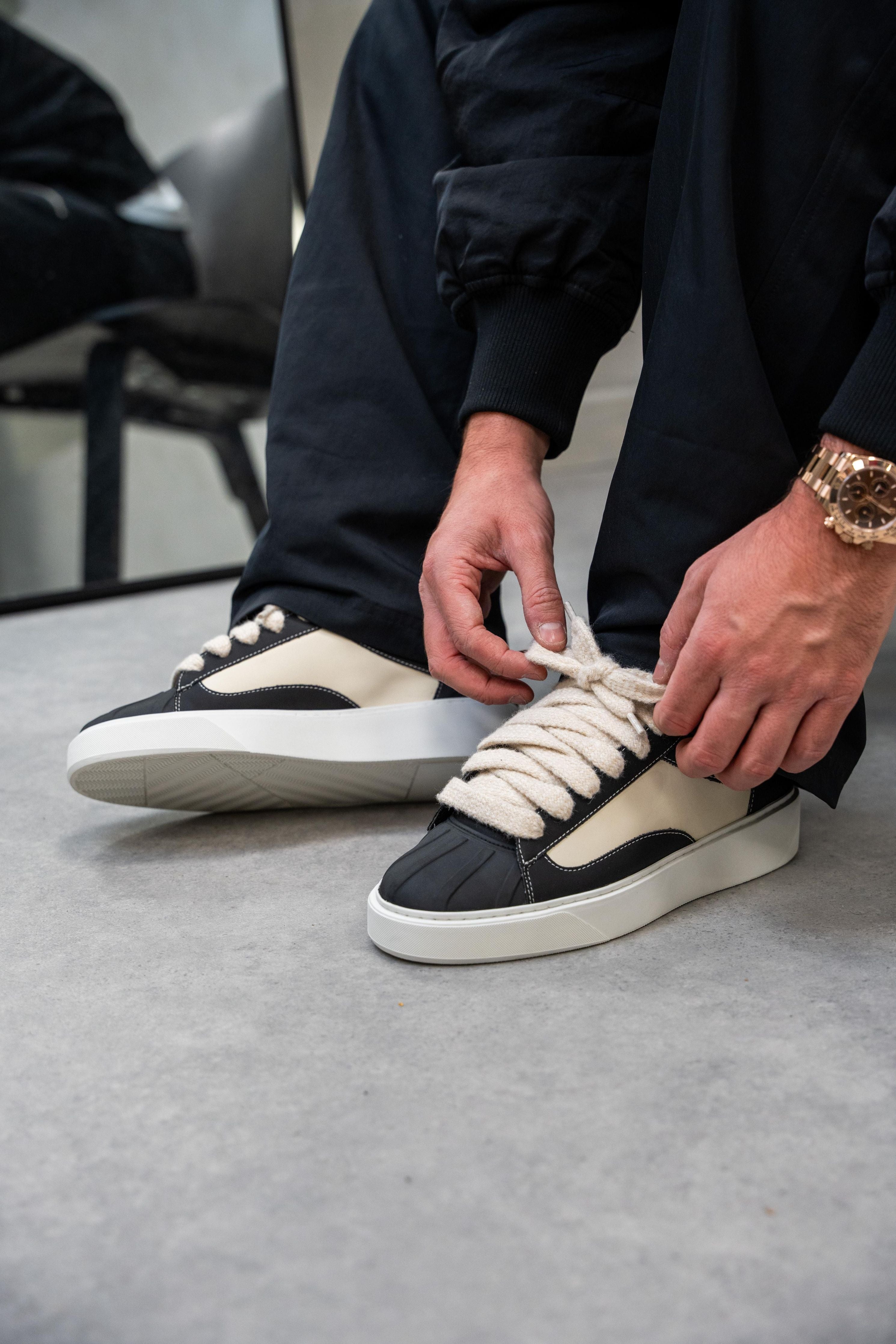 Présentation de l'Eclipse. S'inspirant discrètement des formes épurées des chaussures de basketball des années 1960, réinterprétées à travers un prisme moderne et sculptural. Son élément distinctif, l'embout en caoutchouc façonné à la main, a été méticuleusement développé pendant des mois pour obtenir une silhouette qui équilibre structure et design. Conçu pour s'intégrer parfaitement dans le flux de la tige, ses courbes et ses crêtes ont été façonnées à travers d'innombrables itérations pour atteindre une forme à la fois moderne et ancrée dans l'héritage.