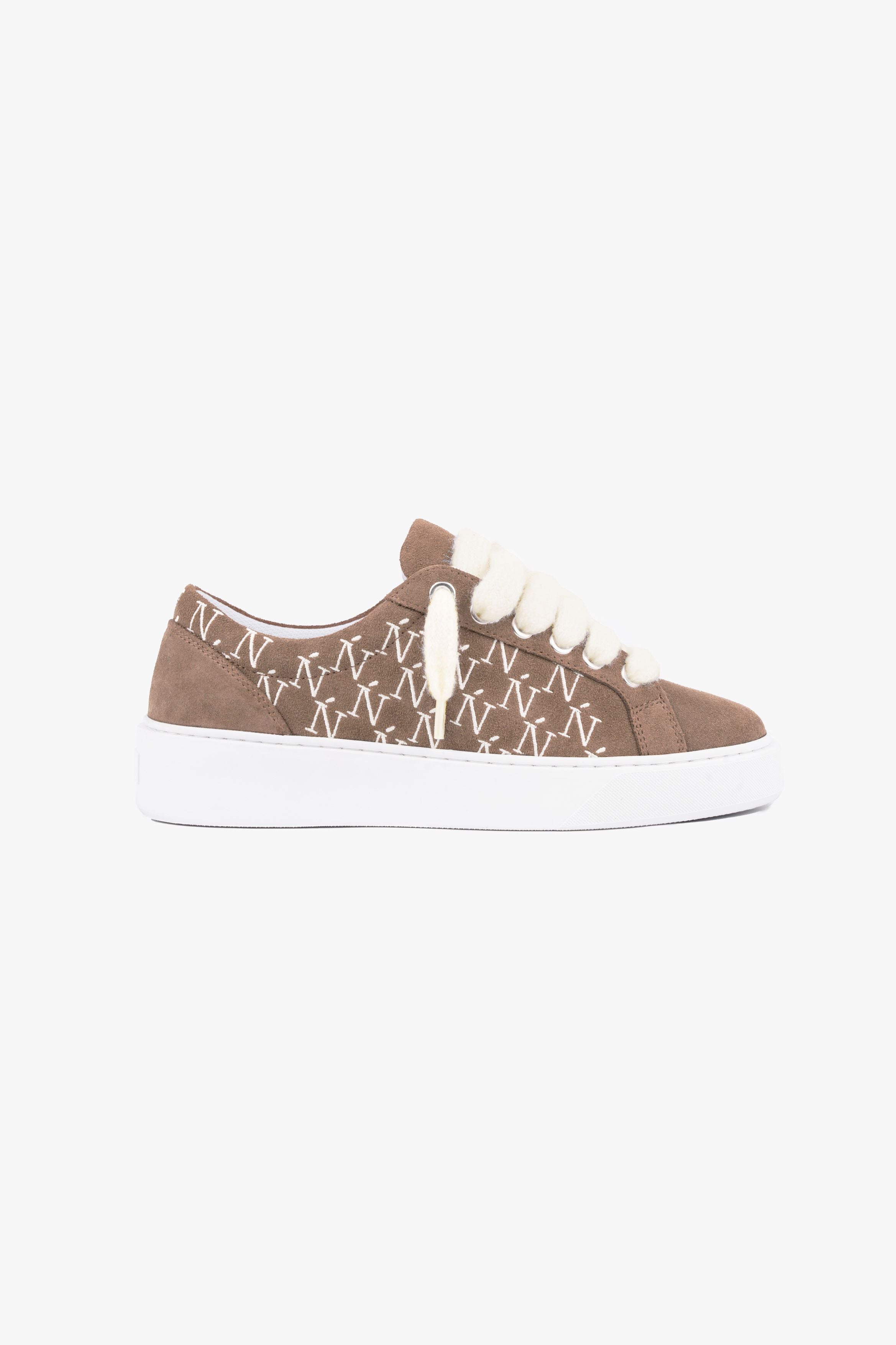 La sneaker da donna Sigńet reinterpreta il nostro design iconico con un aggiornamento elegante e versatile per lei. Realizzata in Italia in morbido suede marrone chiaro, è rifinita con lacci bianchi in mohair da 10 mm e pannelli laterali coordinati, evidenziati dal nostro monogramma Ń ricamato a mano. Una fodera liscia bianca nel colletto migliora il comfort a ogni passo, mentre la tomaia poggia con grazia sulla nostra nuova suola in gomma complessa — creata esclusivamente per la Sigńet. A completare il look, il nostro distintivo logo argento è elegantemente posizionato sulla linguetta, un segno sottile di stile senza tempo.