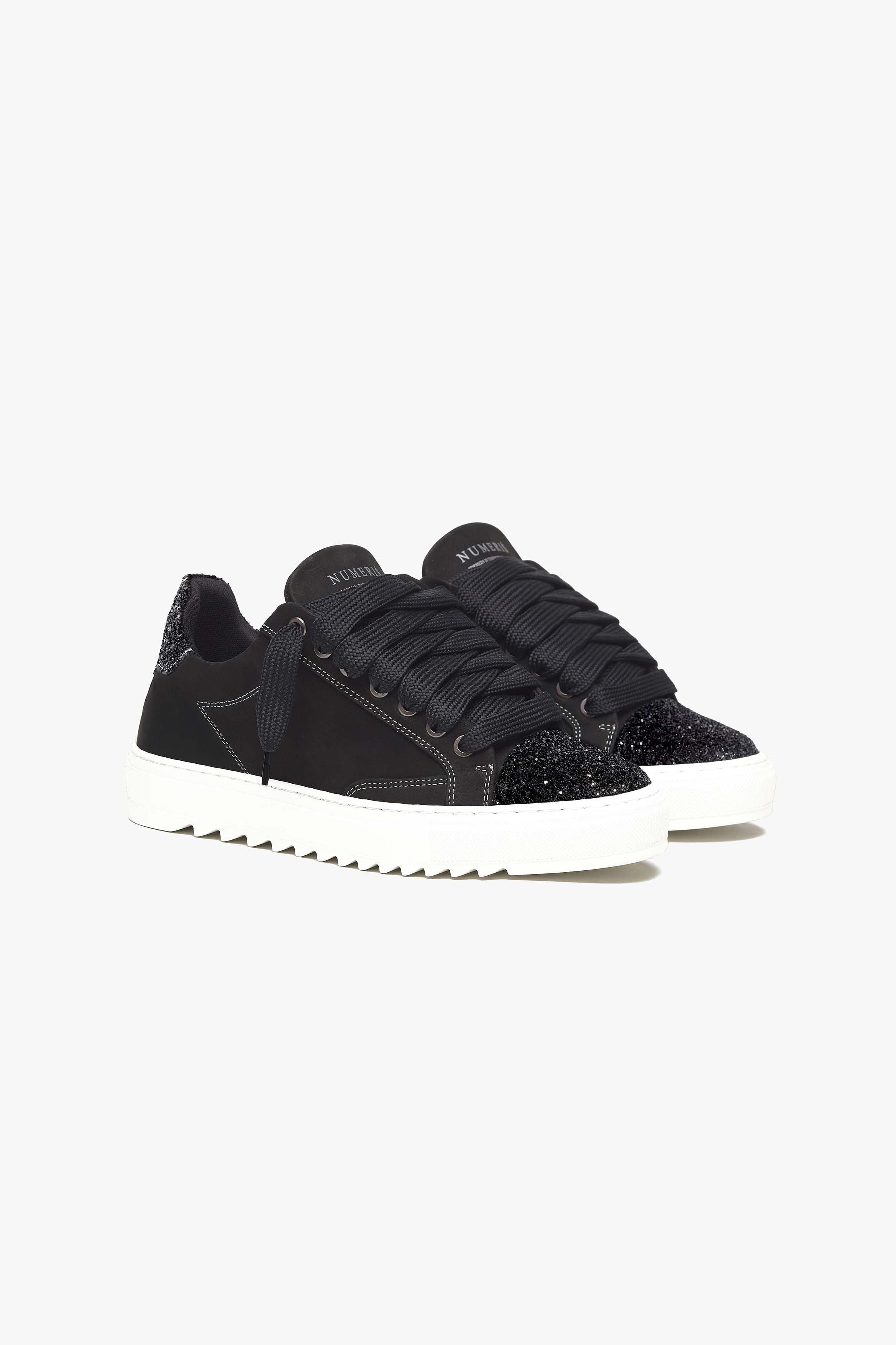 The Crystal features a premium black nubuck upper with crisp white stitching and finished with our crystallised toe cap. The interior of the trainer features collar lining providing unrivalled comfort. The final touches see our Numeriś branding on the heel of the shoe, with our slogan for this style 'Design is thinking made visual' on the tongue.