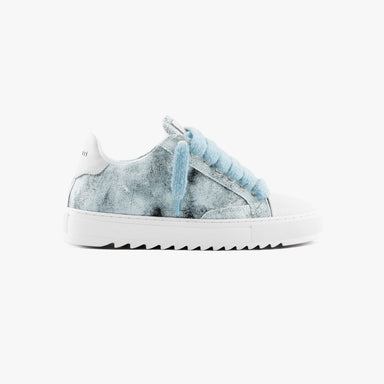 The Thrashed Denim trainer is a celebration of freedom and self-expression. Crafted with meticulous attention to detail, its bespoke hand-distressed washed denim upper is the result of an extensive development process. It took time to perfect the ideal wash, carefully refining techniques to achieve the signature "thrashed" look—ensuring a balance of character and wearability. This dedication to detail means no two pairs will ever bear the same distressed pattern, making each one a unique work of art. Complementing this distinctive feature is the signature crisp white pebbled leather toe cap, adding a touch of sophistication to the design. Inside, the trainer boasts a comfortable collar lining that enhances the overall wear experience. The finishing touches include our distinctive Numeriś branding on the heel, accompanied by the style-defining slogan, 'Design is thinking made visual.”