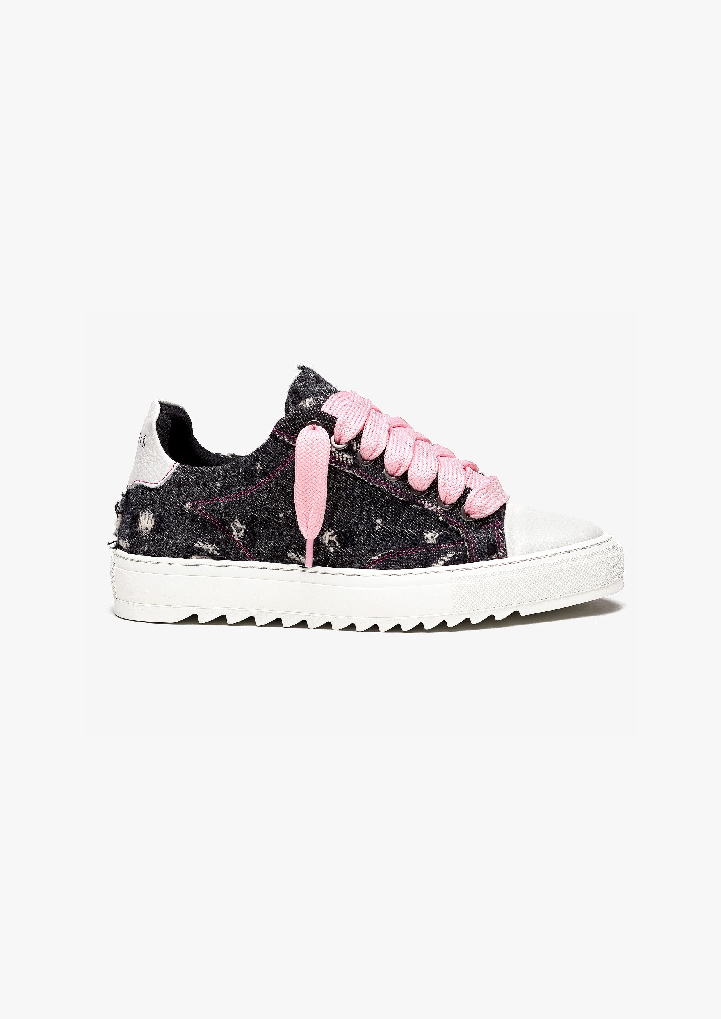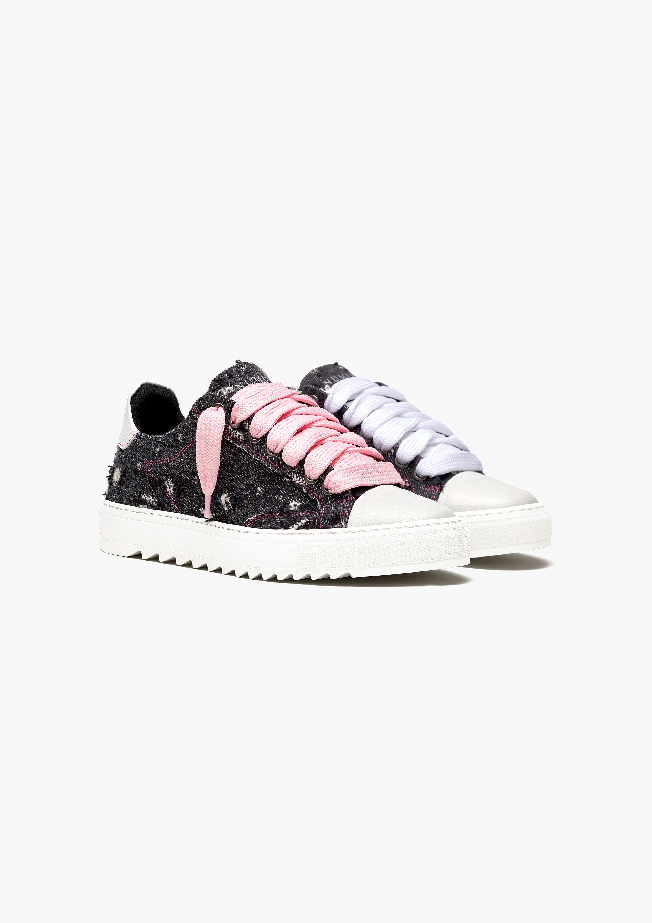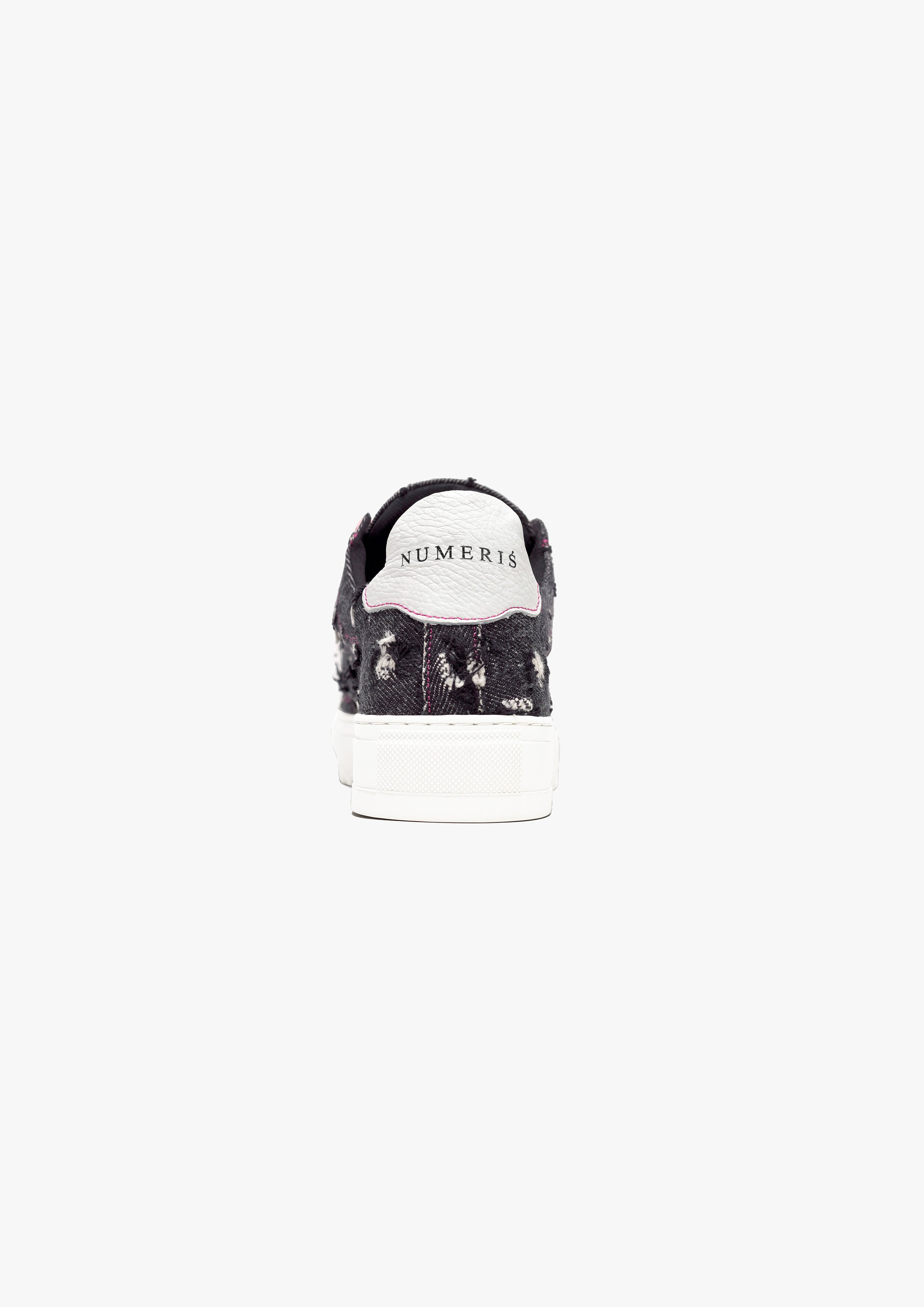 The Pink Denim trainer is a celebration of freedom and self-expression. Crafted with meticulous attention to detail, the bespoke hand-distressed denim upper ensures that each pair is a unique work of art, as no two pairs will bear the same distressed pattern. Complementing this distinctive feature is the signature crisp white pebbled leather toe cap, adding a touch of sophistication to the design. Inside, the trainer boasts a comfortable collar lining that enhances the overall wear experience. The finishing touches include our distinctive Numeriś branding on the heel, accompanied by the style-defining slogan, 'Design is thinking made visual.' It's worth noting that this exceptional creation is limited to just 250 pairs, adding an exclusive touch to this expression of individuality.