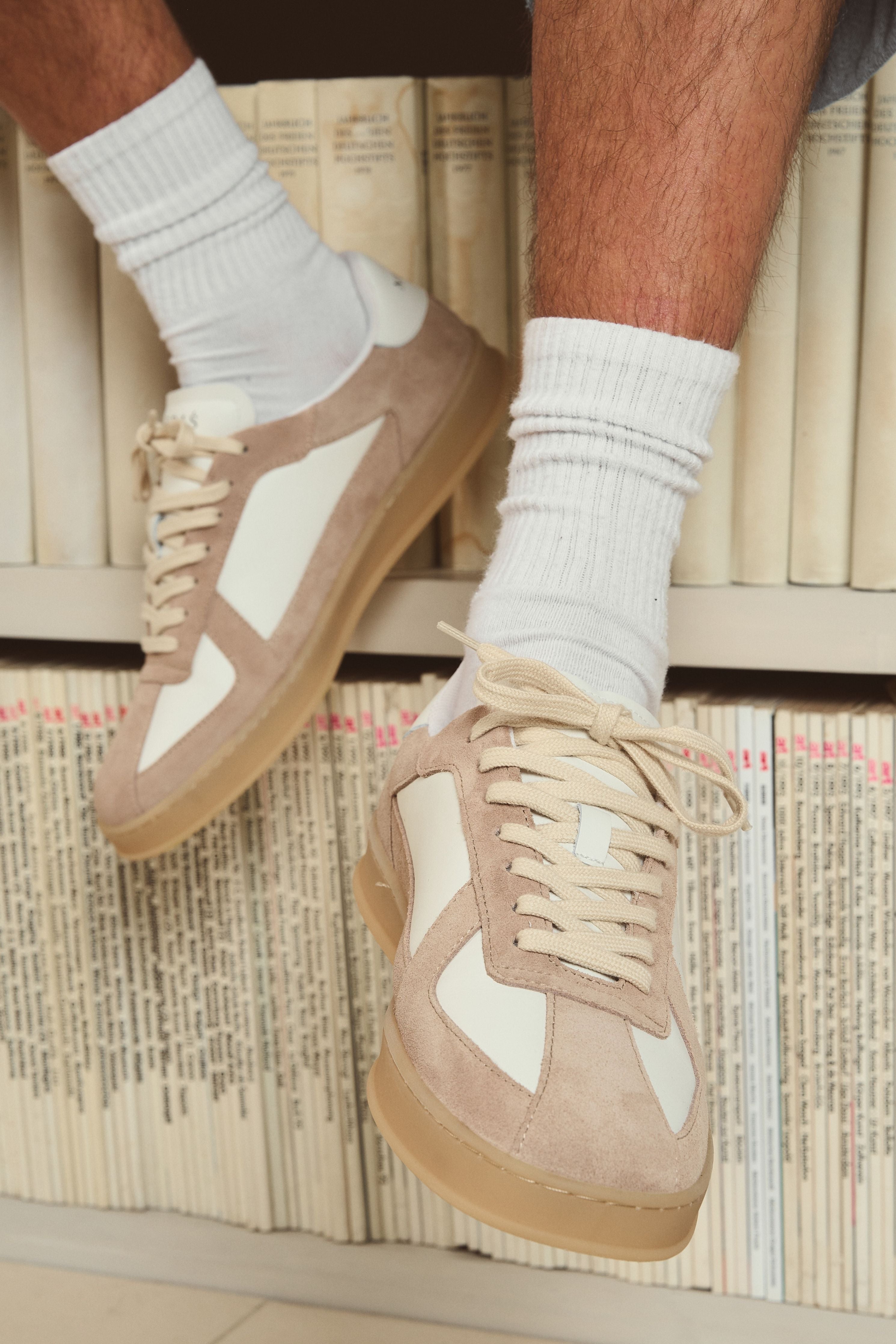 Introducing Helios, a modern reinterpretation of the iconic German Army Trainer. The Helios sneaker blends heritage athletic design with the Numeriś’ unmistakable avant-garde minimalism. Hand crafted in Portugal from supple leather and velvety suede from Italy, the upper retains the shoe’s original utilitarian structure while elevating it through premium materials and refined detailing.