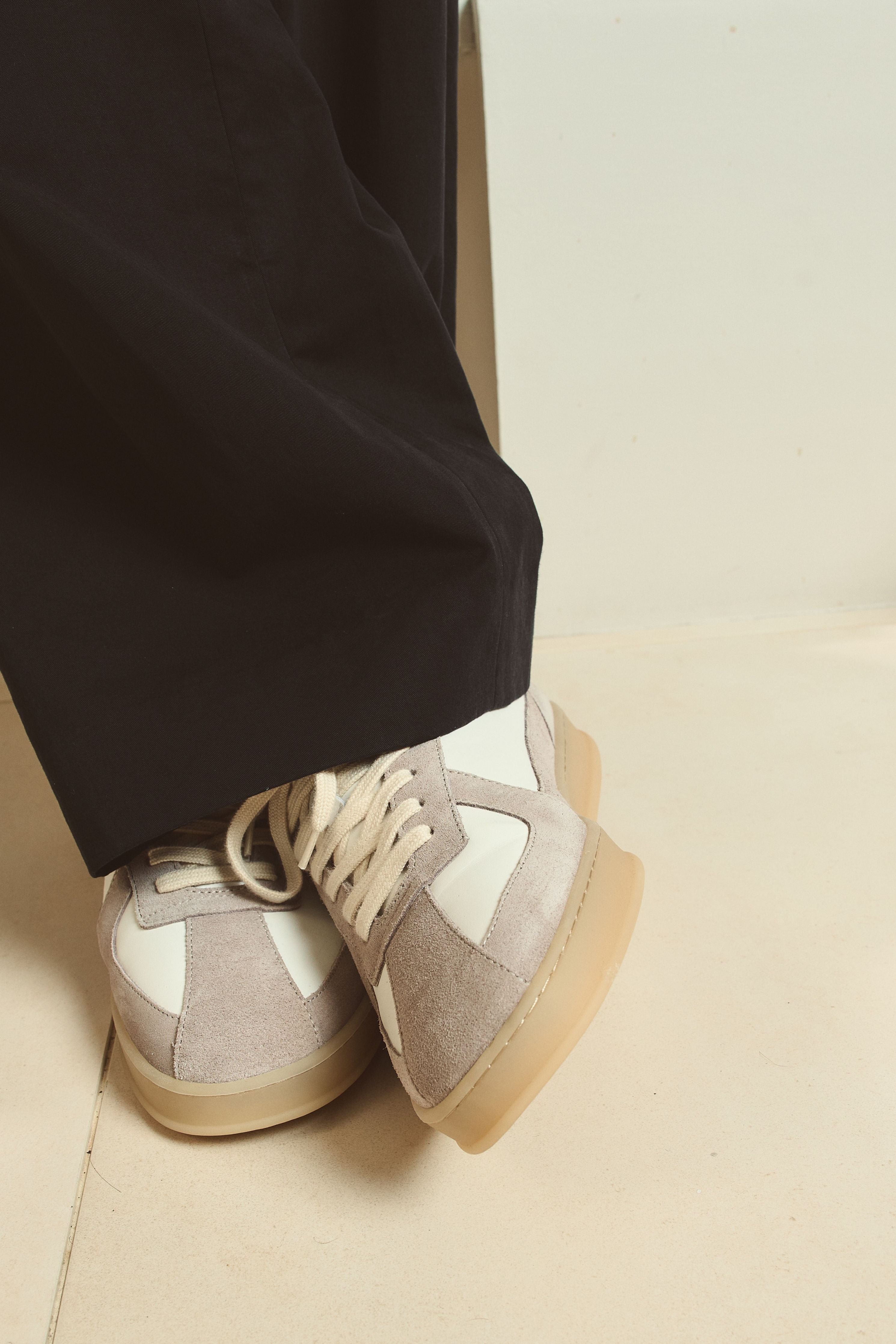 Introducing Helios, a modern reinterpretation of the iconic German Army Trainer. the Helios sneaker blends heritage athletic design with the Numeriś’ unmistakable avant-garde minimalism. Hand crafted in Portugal from supple leather and velvety suede from Italy, the upper retains the shoe’s original utilitarian structure while elevating it through premium materials and refined detailing.