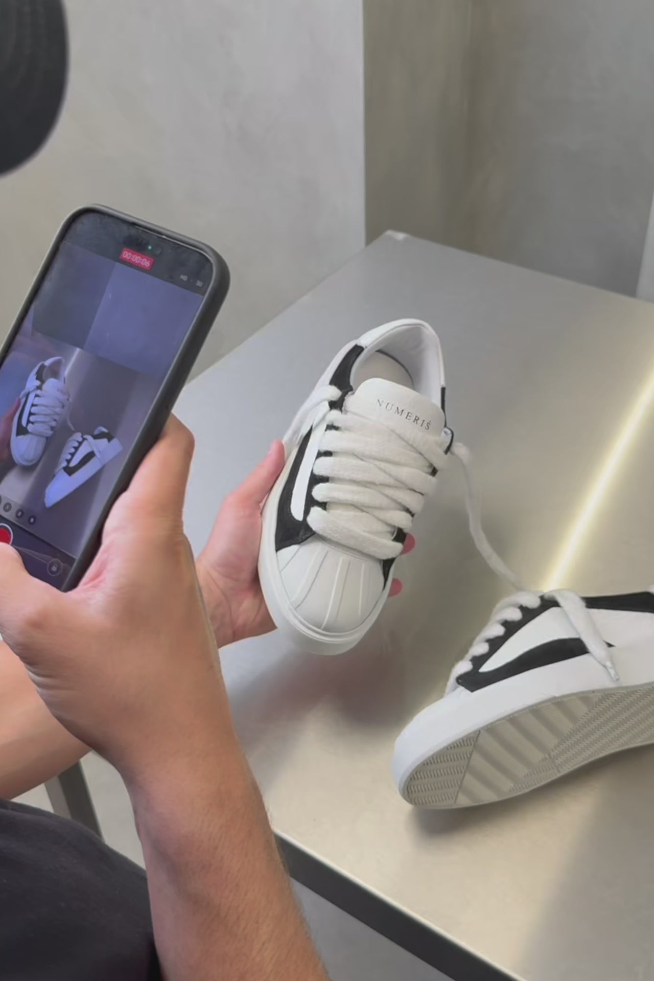 Apresentamos o Eclipse. Inspirado discretamente nas formas minimalistas do calçado de basquetebol dos anos 1960, reinterpretado através de uma lente moderna e escultórica. O seu elemento distintivo, a biqueira de borracha moldada à mão, foi meticulosamente desenvolvida ao longo de meses para alcançar uma silhueta que equilibra estrutura e design. Projetada para se integrar perfeitamente ao fluxo da parte superior, as suas curvas e saliências foram moldadas através de inúmeras iterações para alcançar uma forma que se sente ao mesmo tempo moderna e enraizada na herança.
